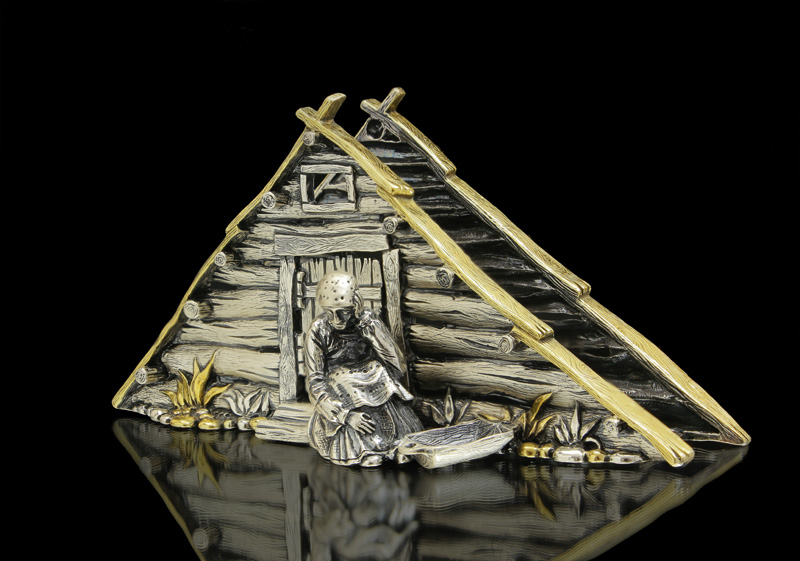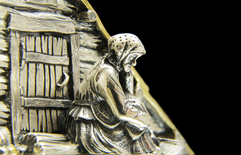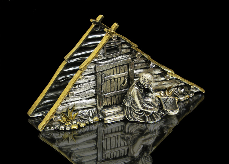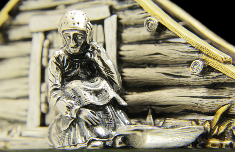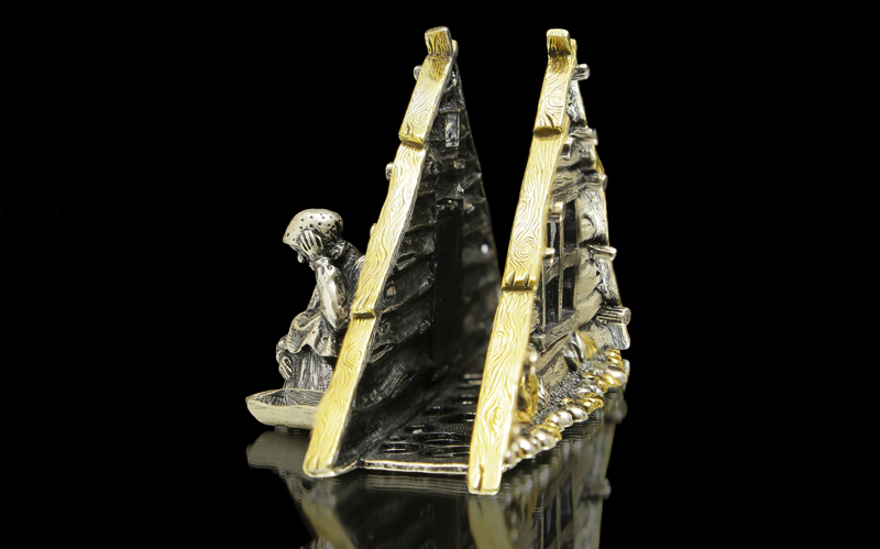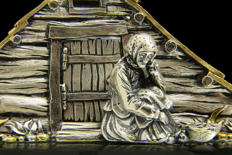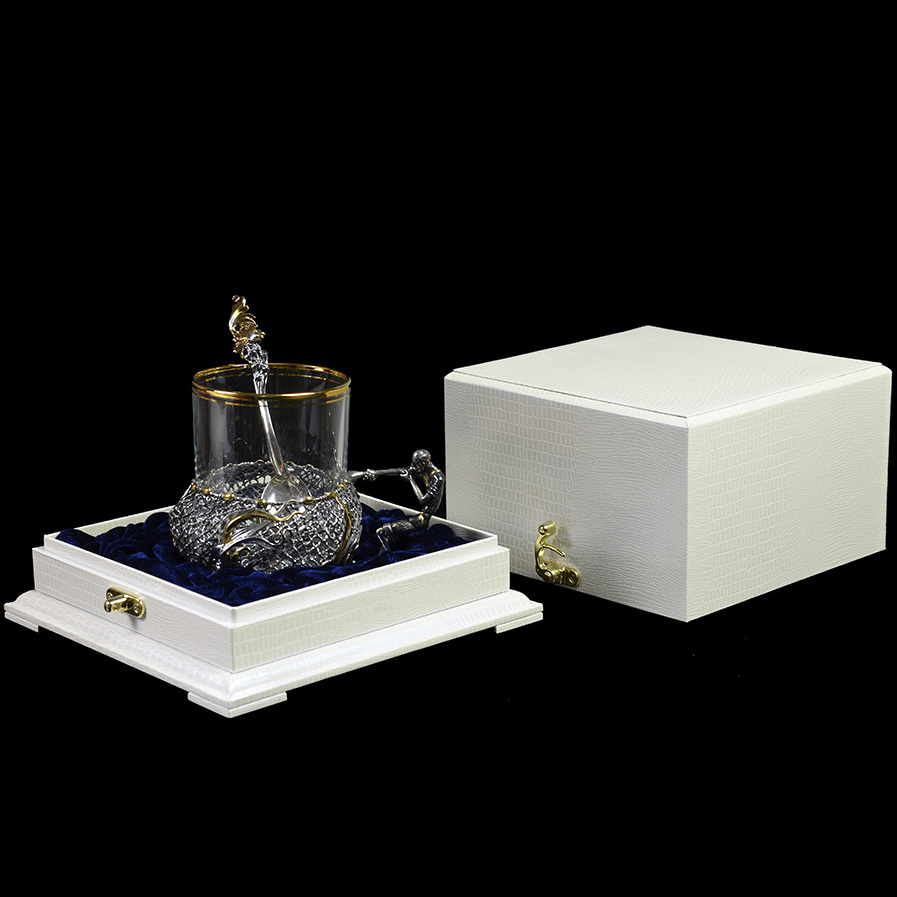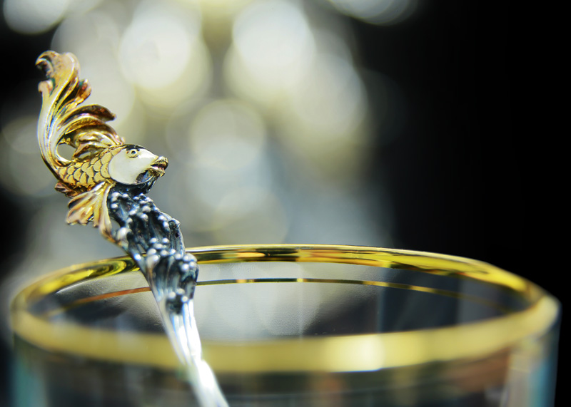 Коллекция из серебра "Золотая рыбка" с подстаканником, ложкой и салфетницей