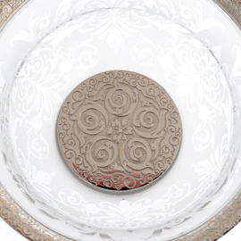 Комплект воспринимается как универсальный элемент сервировки, подходящий как для камерных встреч, так и для торжественных случаев. Он органично вписывается в интерьер, не перегружая его, а дополняя тонкой графикой орнамента. Это предмет, в котором внимание к деталям и аккуратность исполнения создают ощущение продуманной и эстетически выверенной подачи.