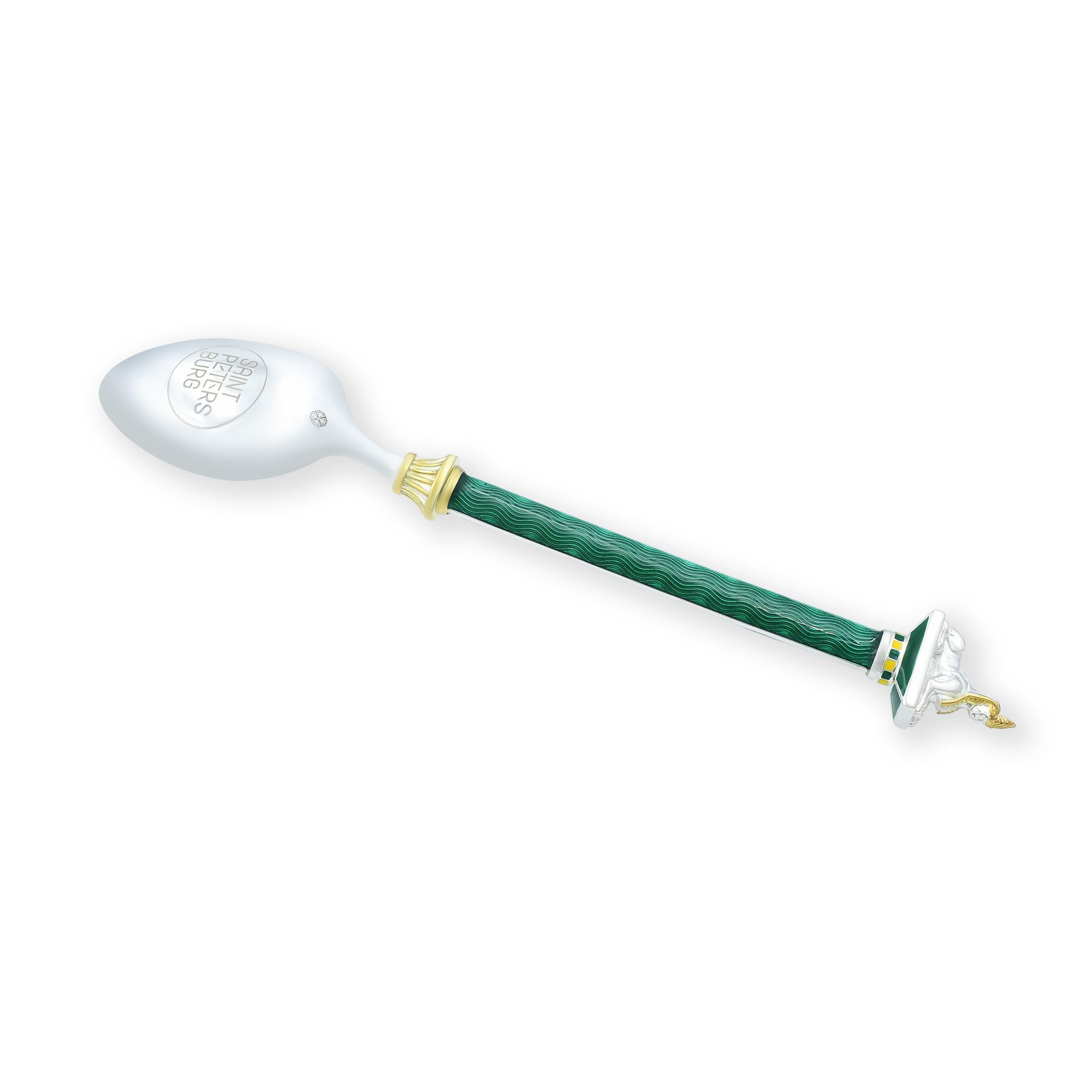 Серия чайных ложек с узнаваемыми образами величайших мест Санкт-Петербурга выполнена из серебра 925 пробы. При создании коллекции использовалась одна из самых эффектных и сложных техник гильошированной эмали, в которой последователи легендарного Фаберже достигли особых высот еще в конце XIX века.