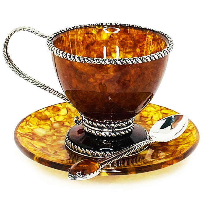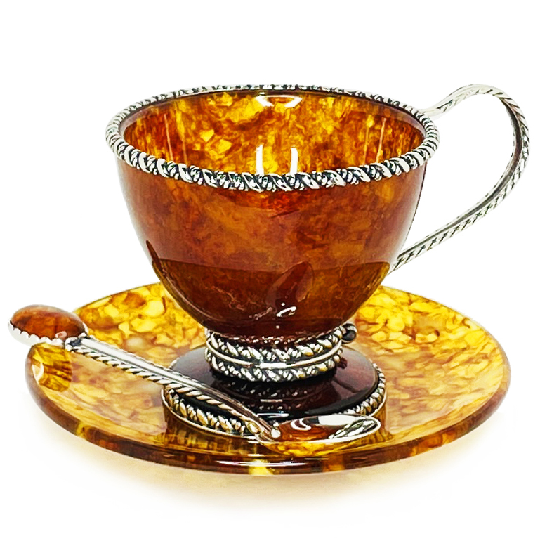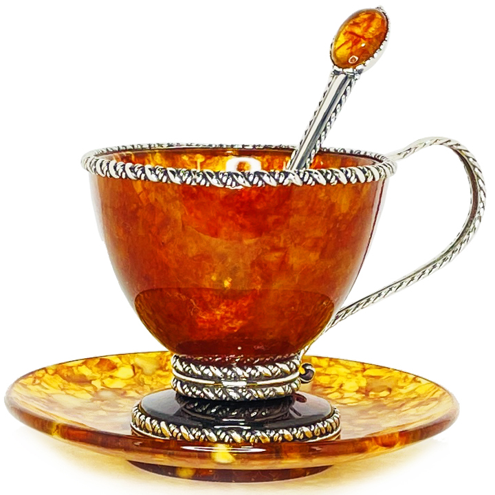 Чайная пара из янтаря "Венеция" с ложкой