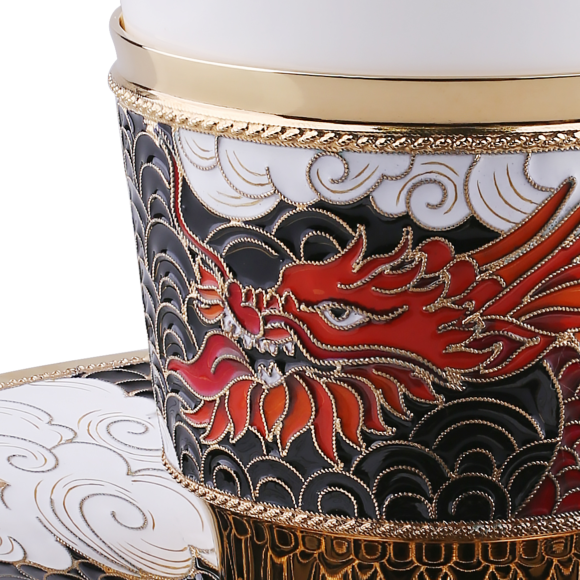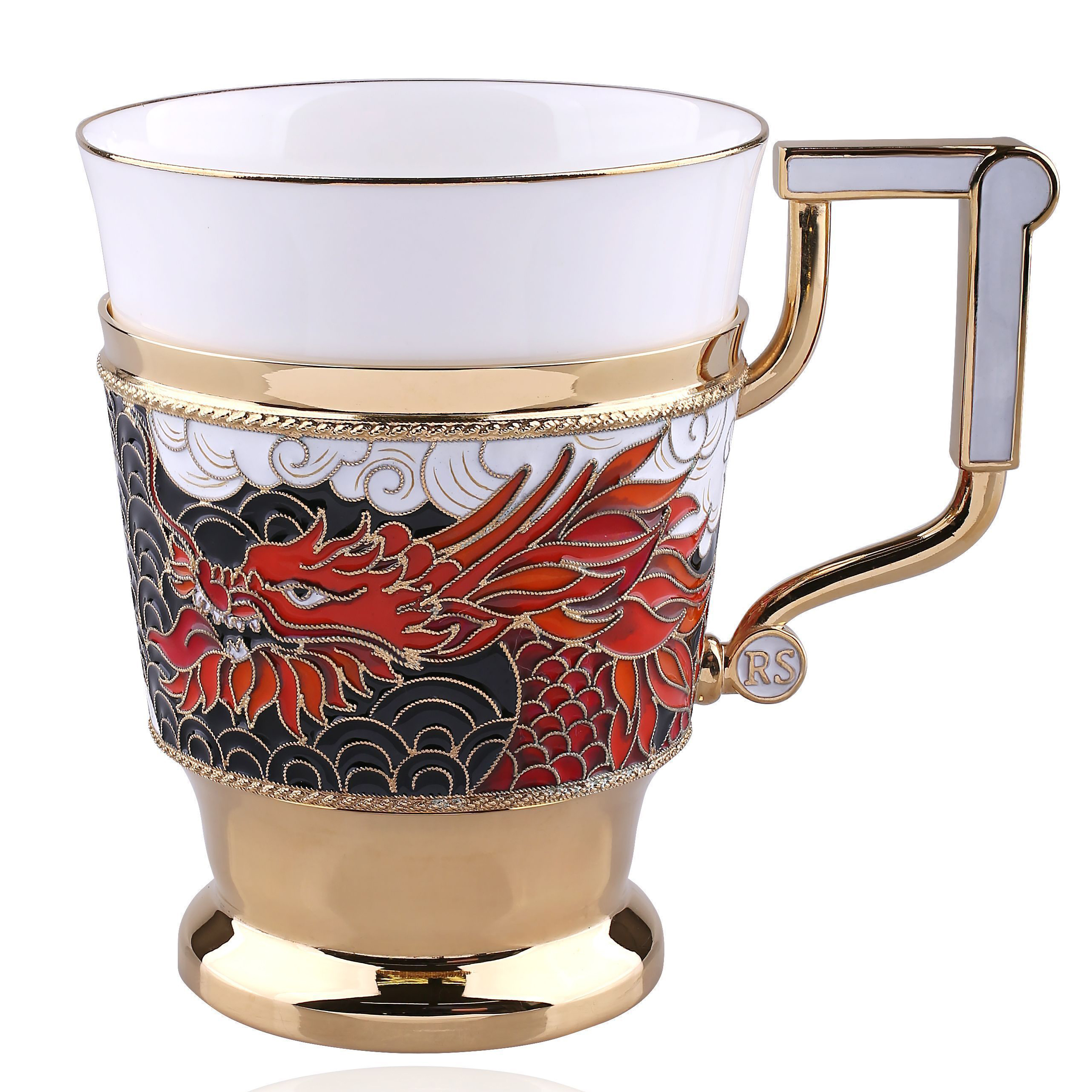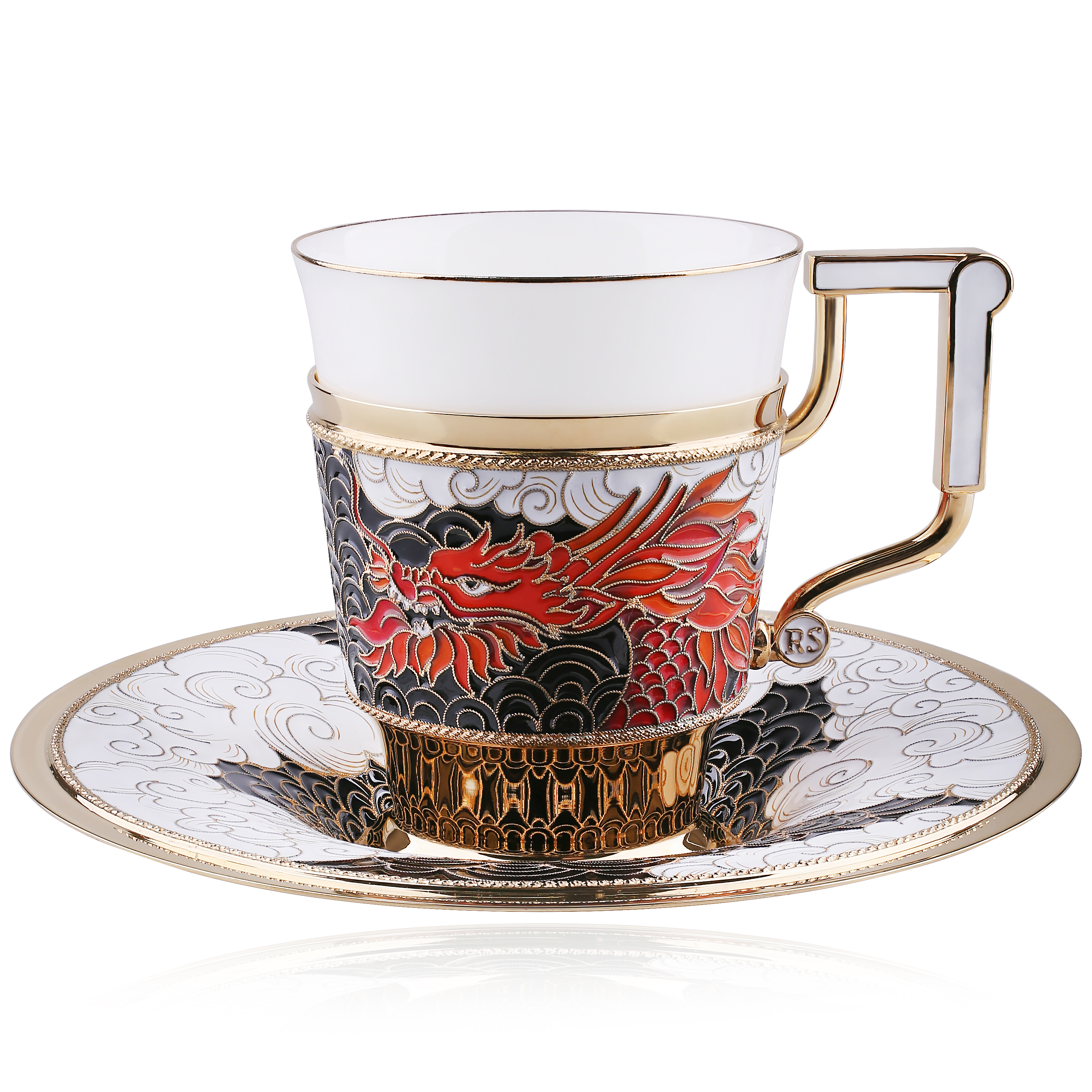 Чайная пара из серебра и фарфора "Дракон" - это изысканный и утонченный подарок, который станет прекрасным символом удачи и процветания к новому году Дракона. Технологии изготовления, такие как эмалево-филигранная техника и золочение, делают эту чайную пару по-настоящему уникальной и роскошной.