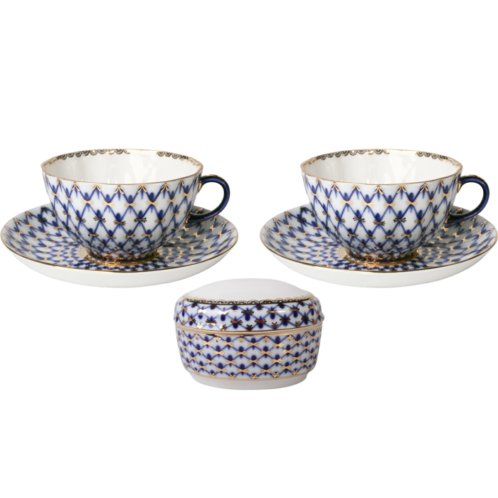 Чайные пары "Кобальтовая сетка" формы Тюльпан, на 2 персоны, 5 предметов