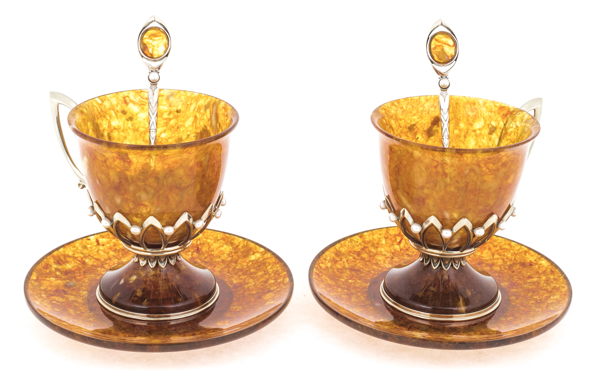 Чайный набор из янтаря "Императрица" на 2 персоны, с жемчугом