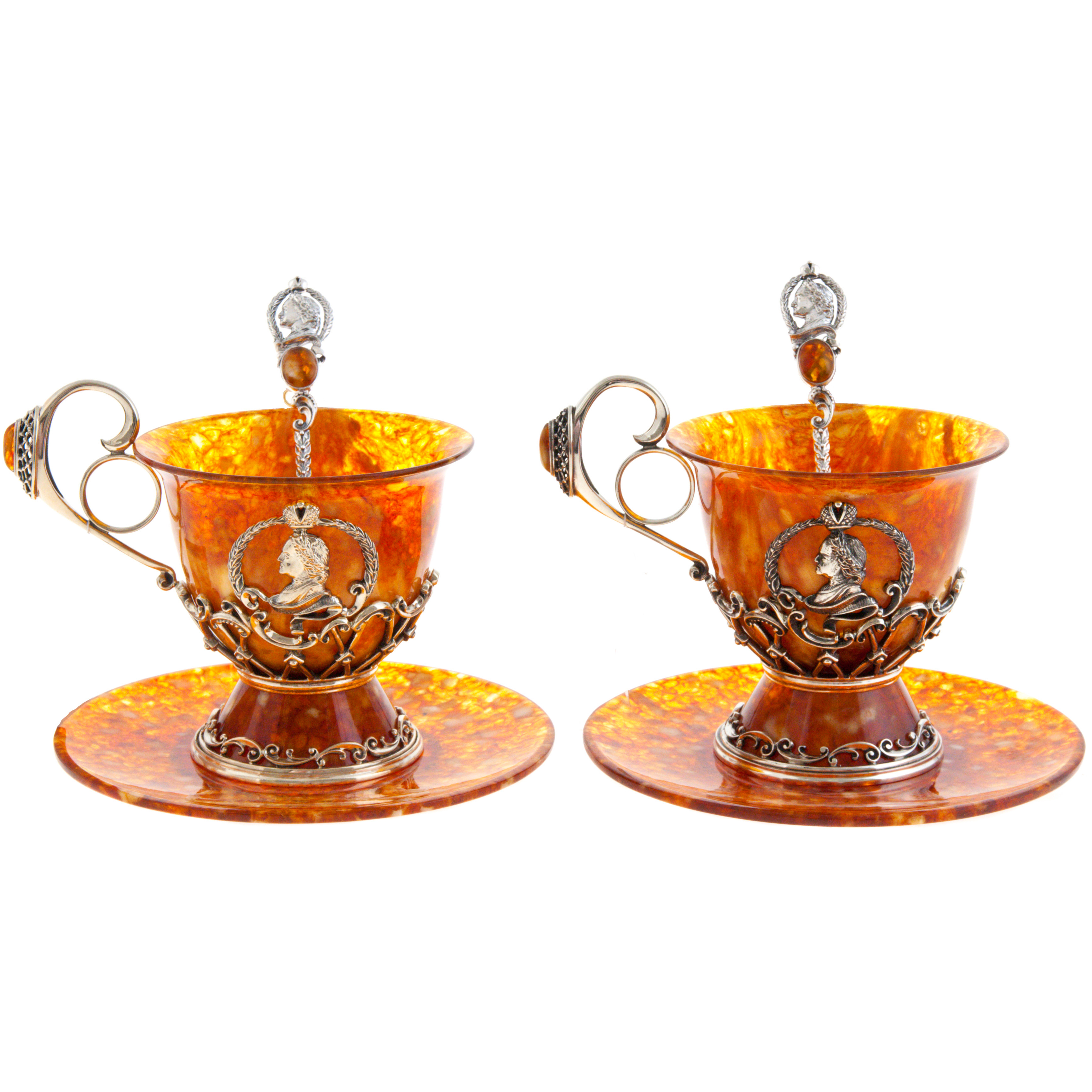 Чайный набор из янтаря "Пётр I" на 2 персоны