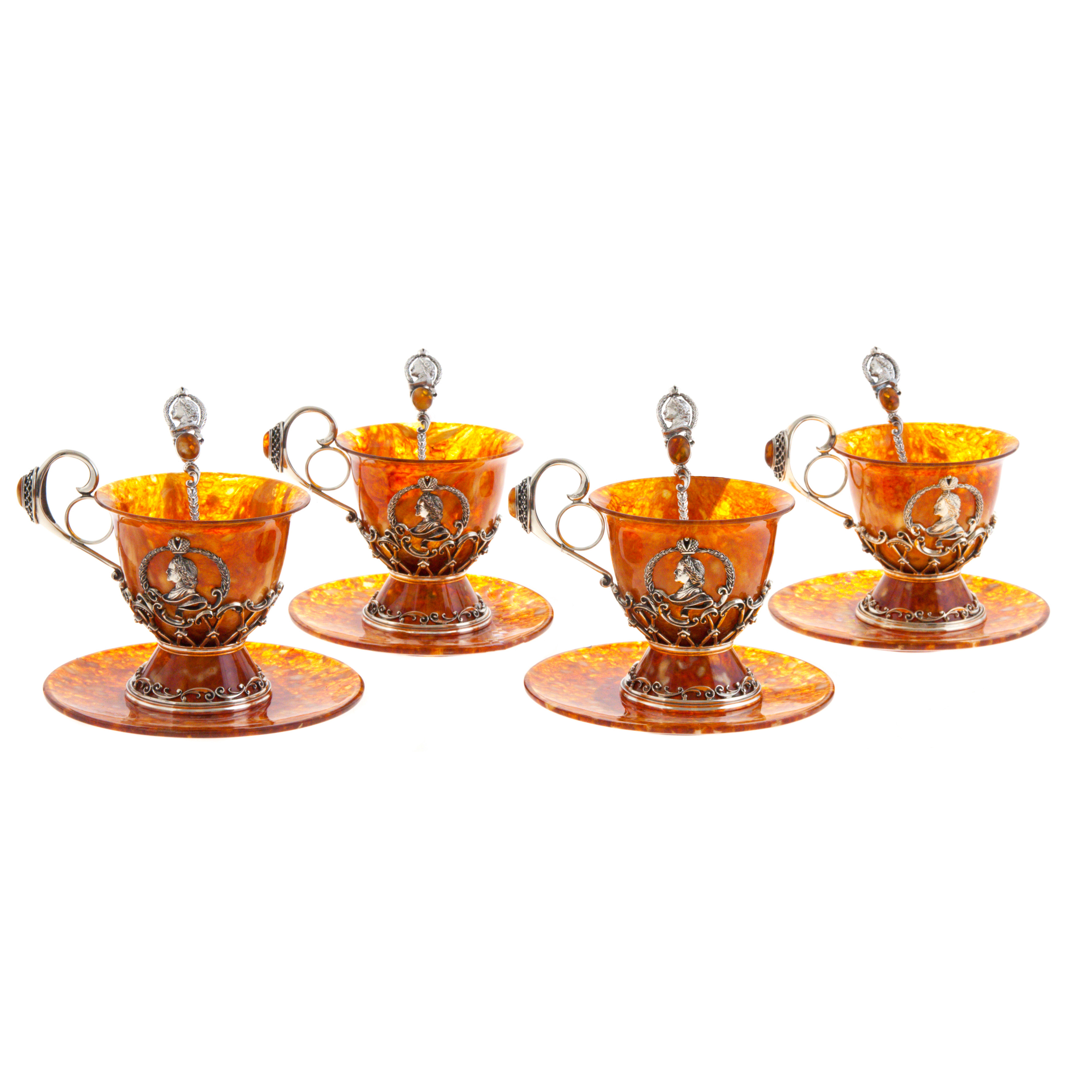 Чайный набор из янтаря "Пётр I" на 4 персоны