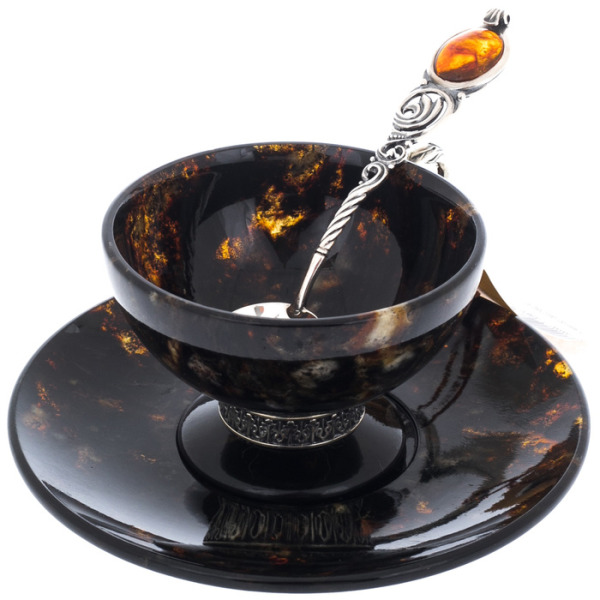 Янтарь – волшебный камень, сочетающий в себе целебные и магические свойства, роскошь и тепло. Большинство знаменитых личностей окружали себя янтарем: янтарная комната Петра 1 и корона египетского фараона Тутанхамона - это лишь начало списка. Посуда из янтаря является неизменным атрибутом сервировки стола на аристократических обедах и приемах. Изящные изделия вписываются в любой интерьер. Сочетание янтаря с серебром или бронзой выгодно подчеркивает красоту камня и благородный блеск драгоценных металлов.