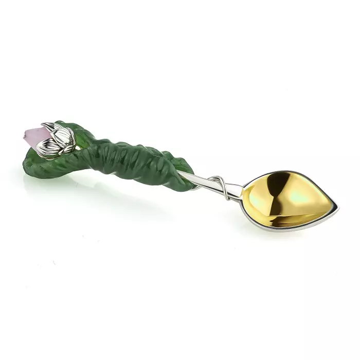 Образ лотоса, лежащий в основе всей композиции, несёт в себе многослойное символическое значение. Лотос ассоциируется с чистотой, гармонией и внутренним возрождением, соединяя в себе силу природы и духовную глубину. В этом наборе он раскрывается через форму, материал и свет: нефрит символизирует жизненную энергию и устойчивость, серебро — ясность и благородство, золочение — тепло и свет, а кварц — чистоту и мягкость. В результате создаётся не просто предмет сервировки, а законченный художественный объект, отражающий философию ювелирного дома MOISEIKIN — «красота функциональности», где каждая деталь одновременно служит и эстетике, и практическому назначению.