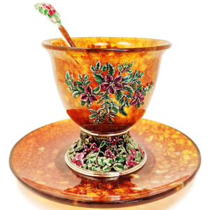 Янтарь – волшебный камень, сочетающий в себе целебные и магические свойства, роскошь и тепло. Большинство знаменитых личностей окружали себя янтарем: янтарная комната Петра 1 и корона египетского фараона Тутанхамона - это лишь начало списка. Посуда из янтаря является неизменным атрибутом сервировки стола на аристократических обедах и приемах. Изящные изделия вписываются в любой интерьер. Сочетание янтаря с серебром или бронзой выгодно подчеркивает красоту камня и благородный блеск драгоценных металлов.