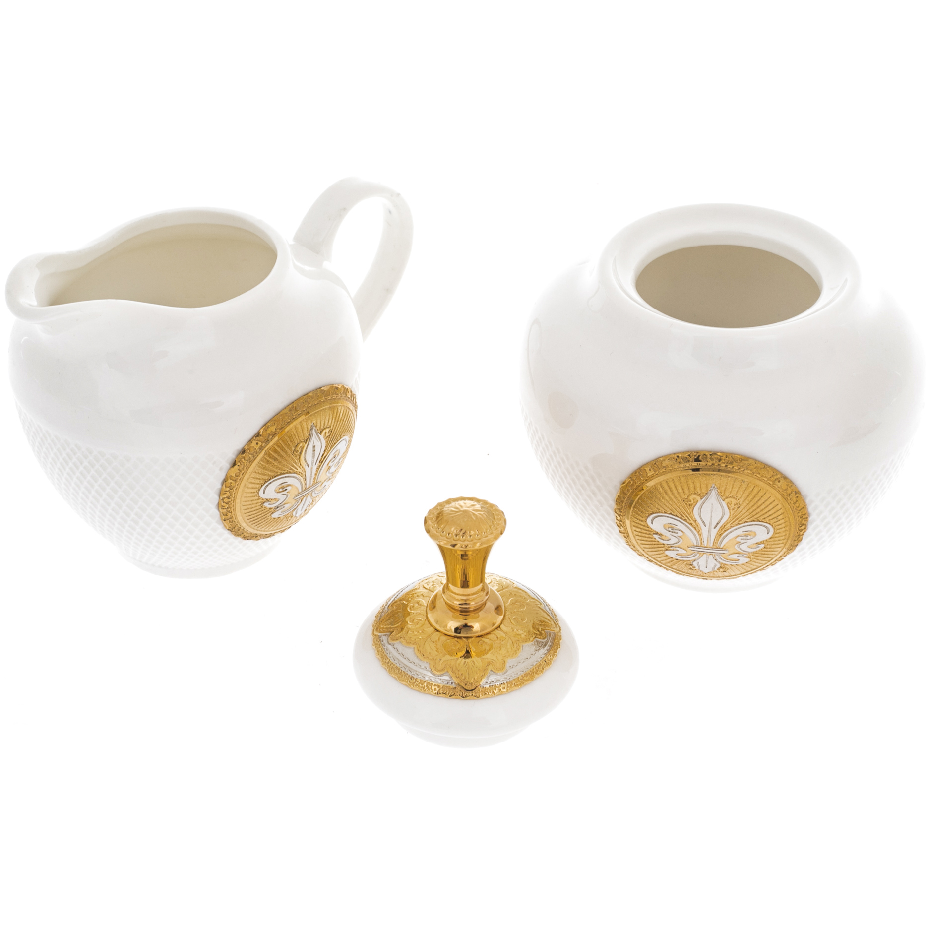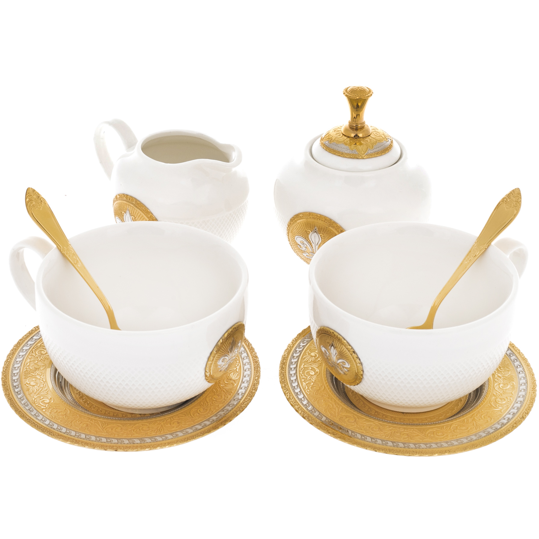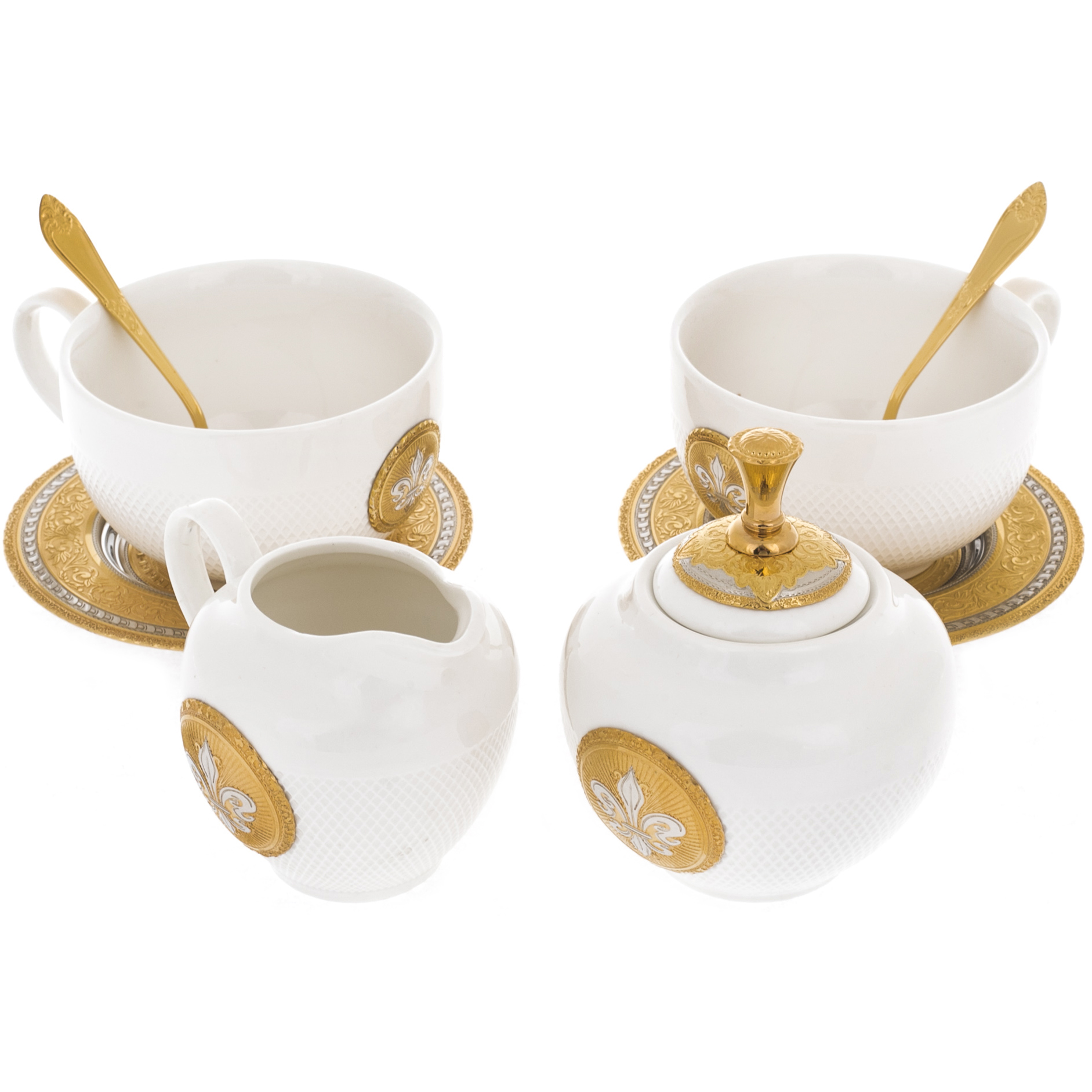 Комплектация:молочник, сахарница, 2 чашки, 2 тарелки, 2 ложки.
