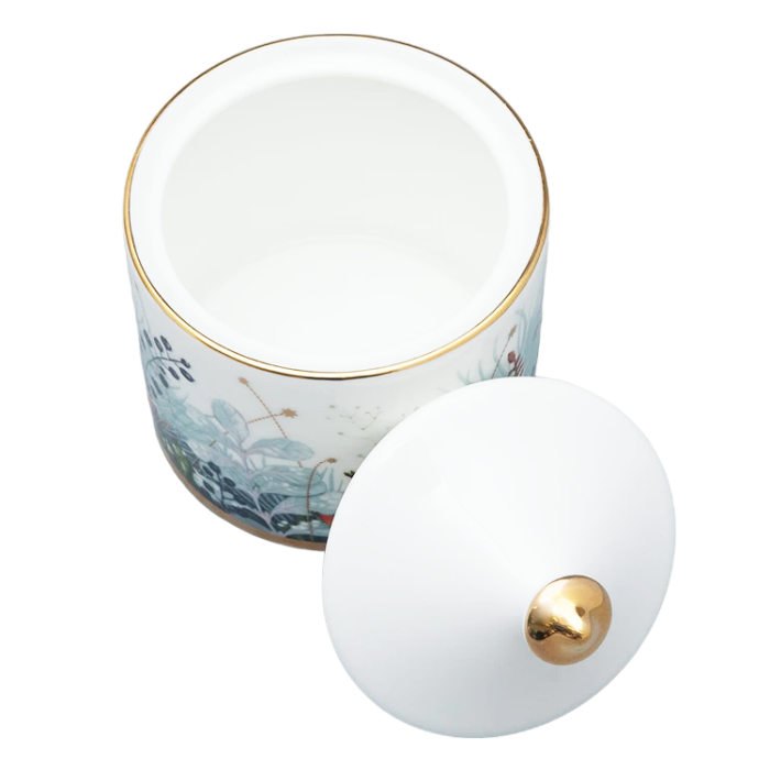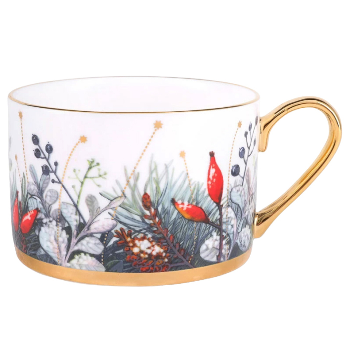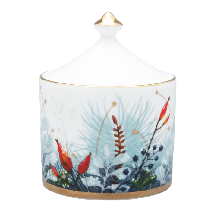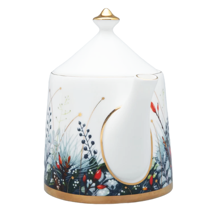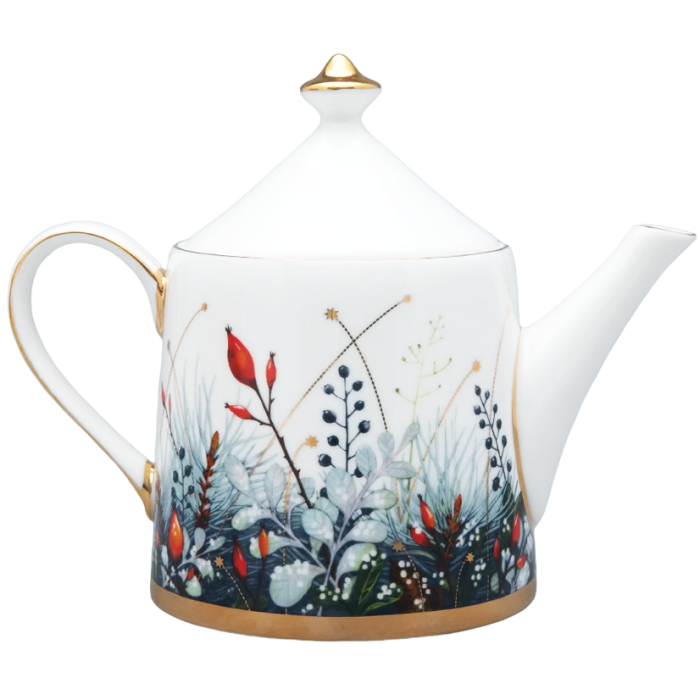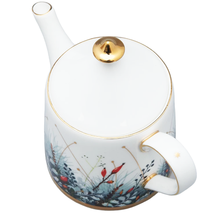 Название “Календа” ориентировано на международный рынок: в латыни “calendae” - первый день месяца. Это слово перешло в европейские языки, а также по версии лингвистов в старославянский в форме “Коляда”, где чаще всего употреблялось как народное название рождественского Сочельника. Таким образом, название серии вбирает в себя образы рождественского настроения и начала нового календарного периода. Вводя в декор венки из сосновых веток и декоративных растений с ягодами, автор обращается не только к западноевропейской рождественской традиции, но и к художественному наследию Императорского фарфорового завода, вдохновляясь композициями одного из ведущих живописцев по фарфору XIX века Федора Красовского. Декор выполнен в технике деколи, однако производит впечатление ручной росписи. На основе фундаментальных знаний в области дизайна и шелкографии Юлия Чистякова самостоятельно работала над проектом от замысла до вывода в печать, добиваясь максимального качества в передаче тончайших линий и создания рельефа.