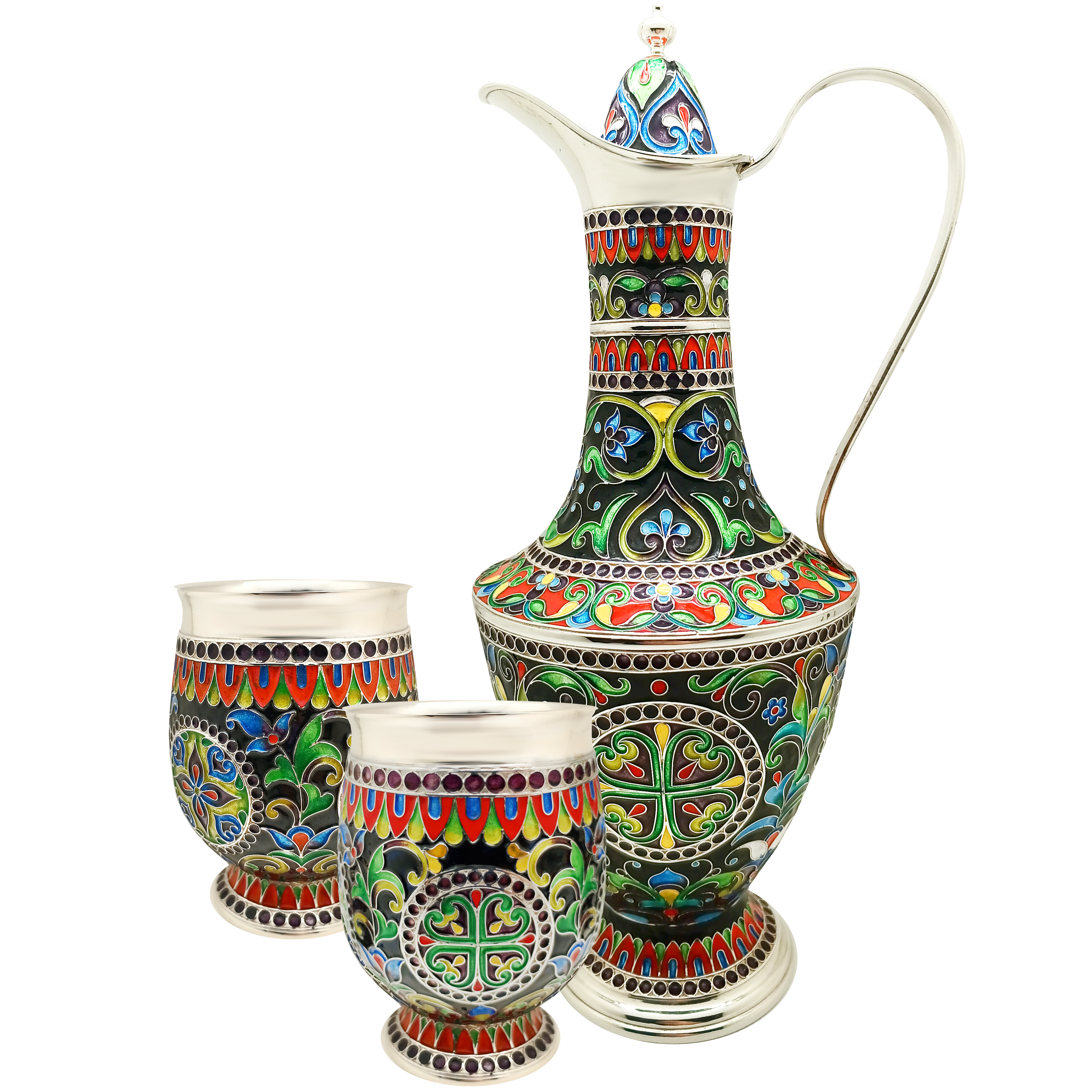 Чайный набор из серебра "Душа Востока" на 2 персоны, финифть
