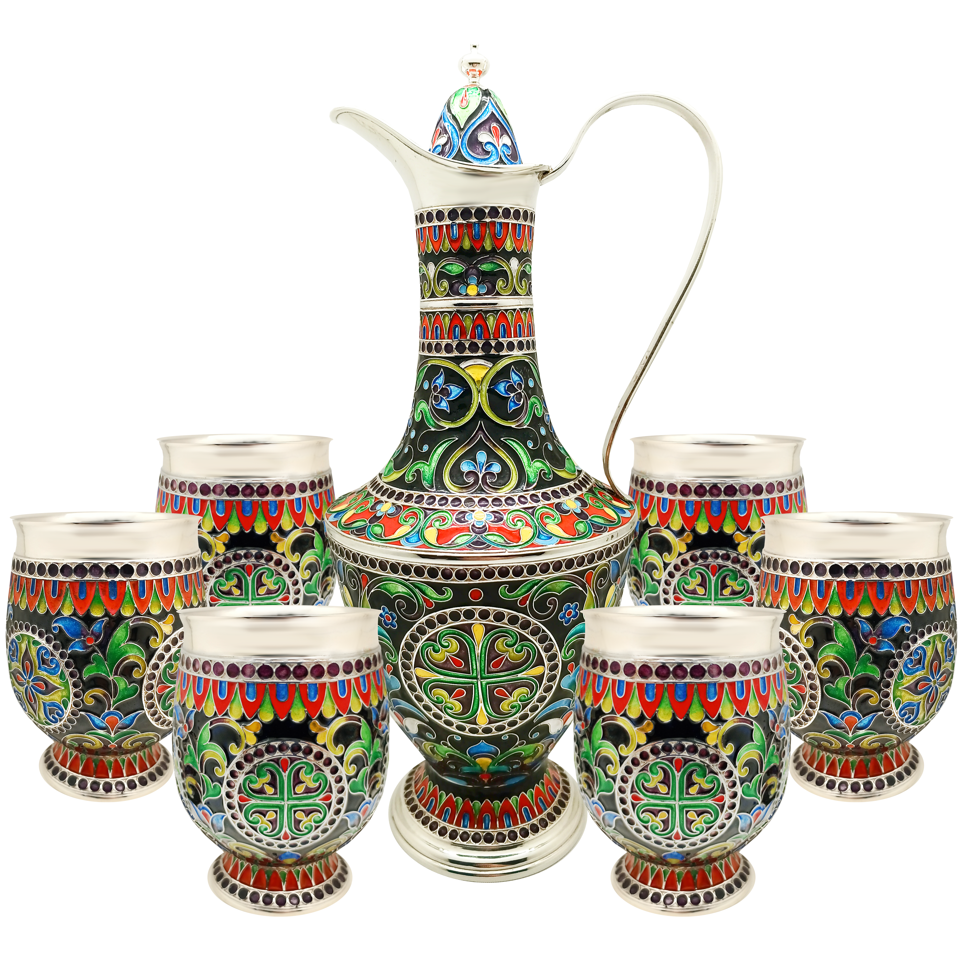 Чайный набор из серебра "Душа Востока" на 6 персон, финифть