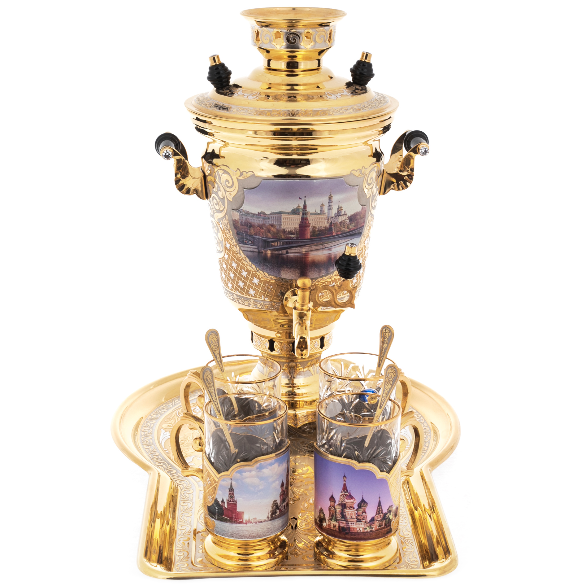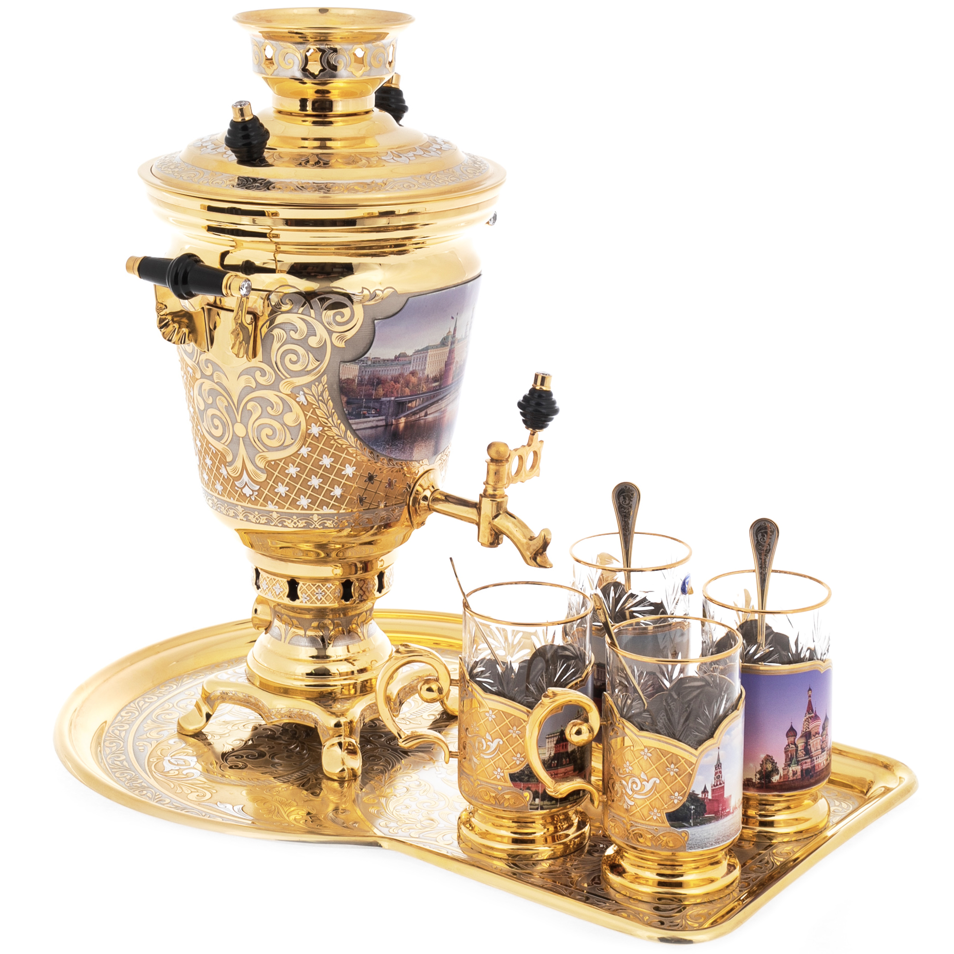 Чайный набор с самоваром "Москва" на 4 персоны, 10 предметов, Златоуст