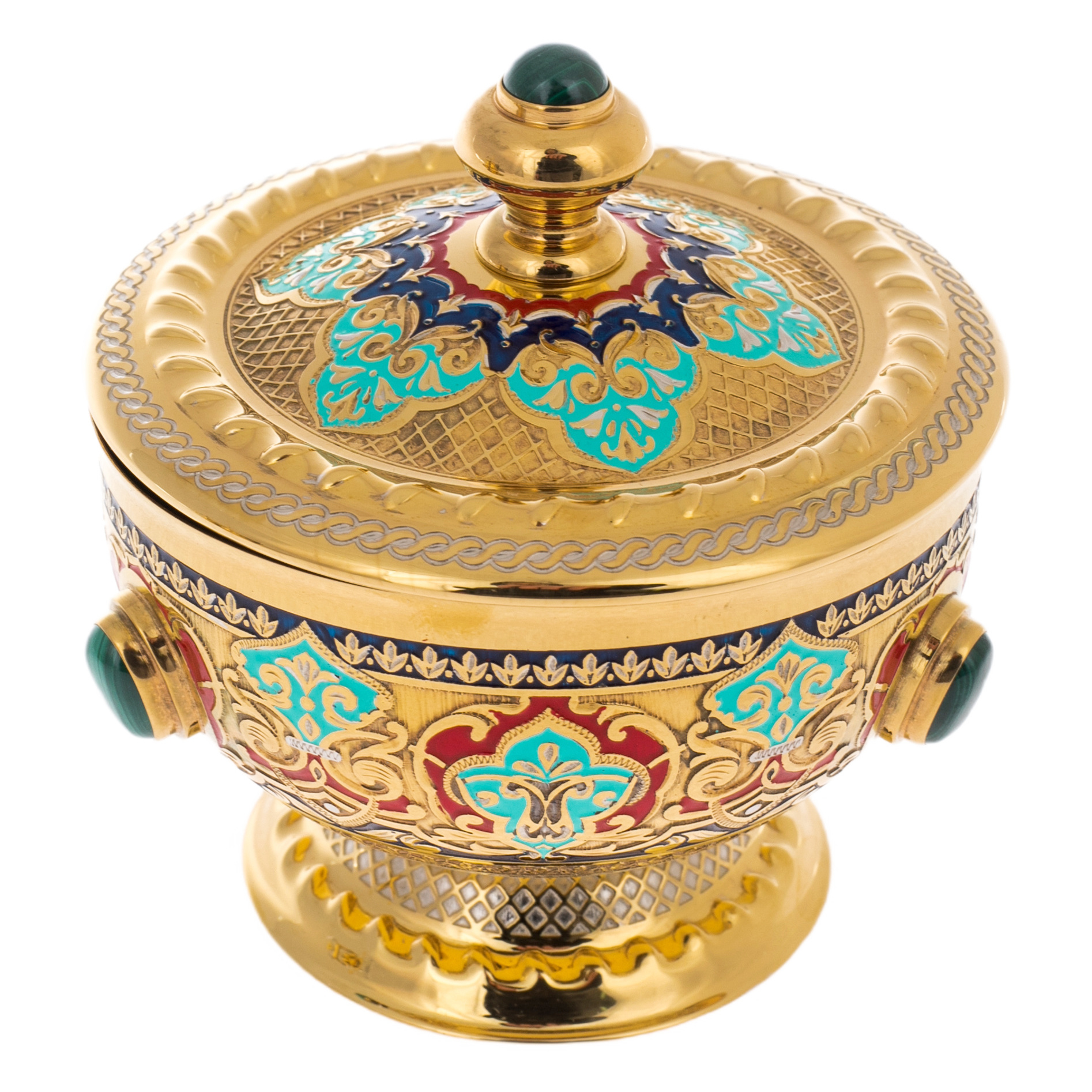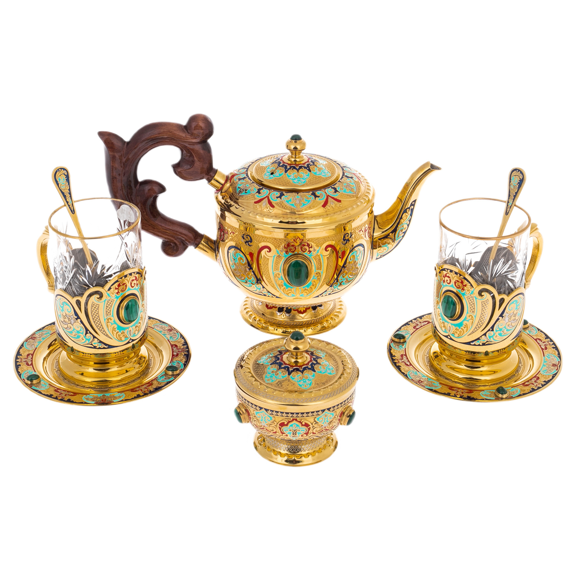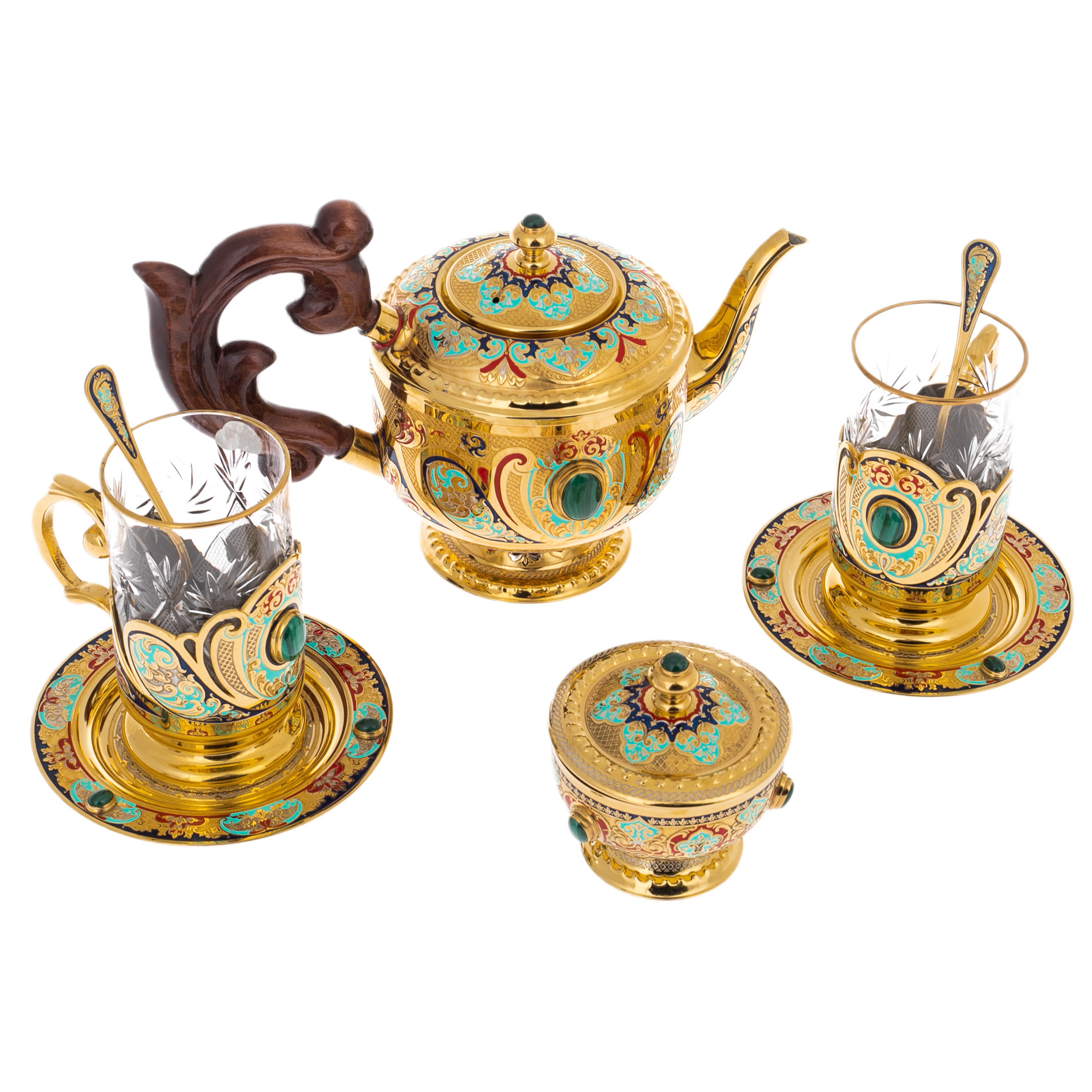 Чайный сервиз "Царевич" на 2 персоны, с малахитом, Златоуст