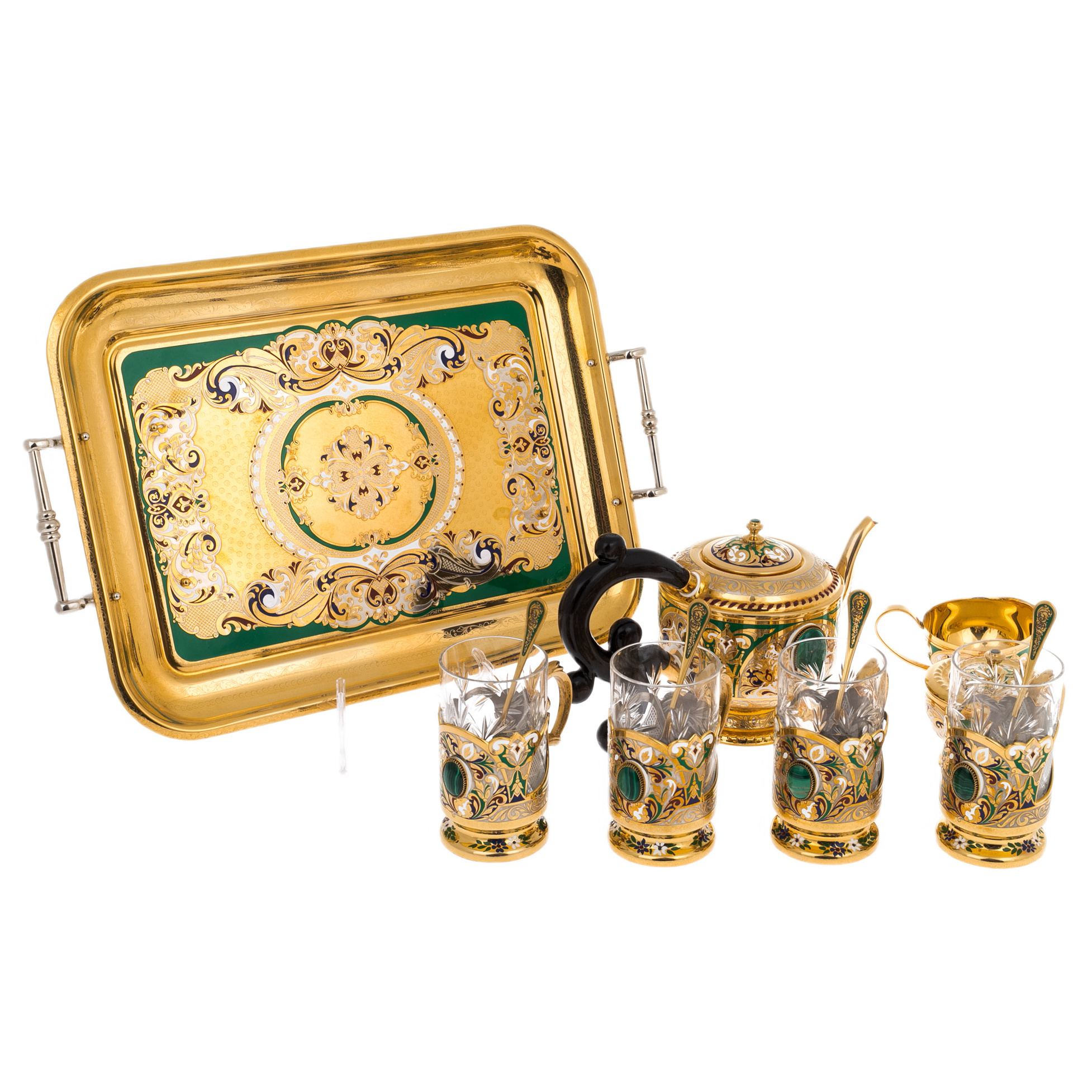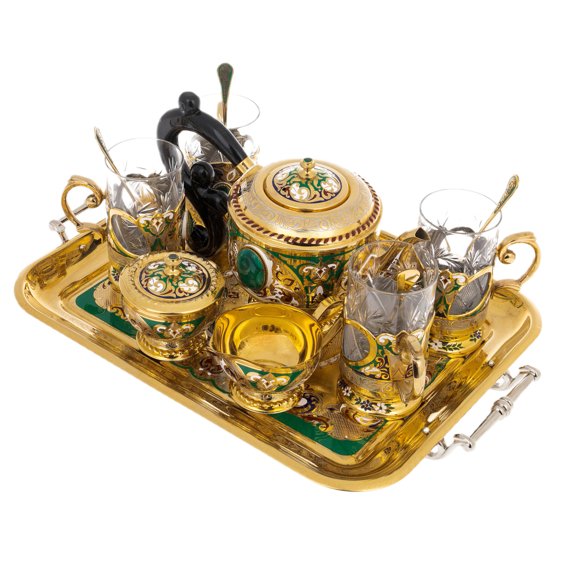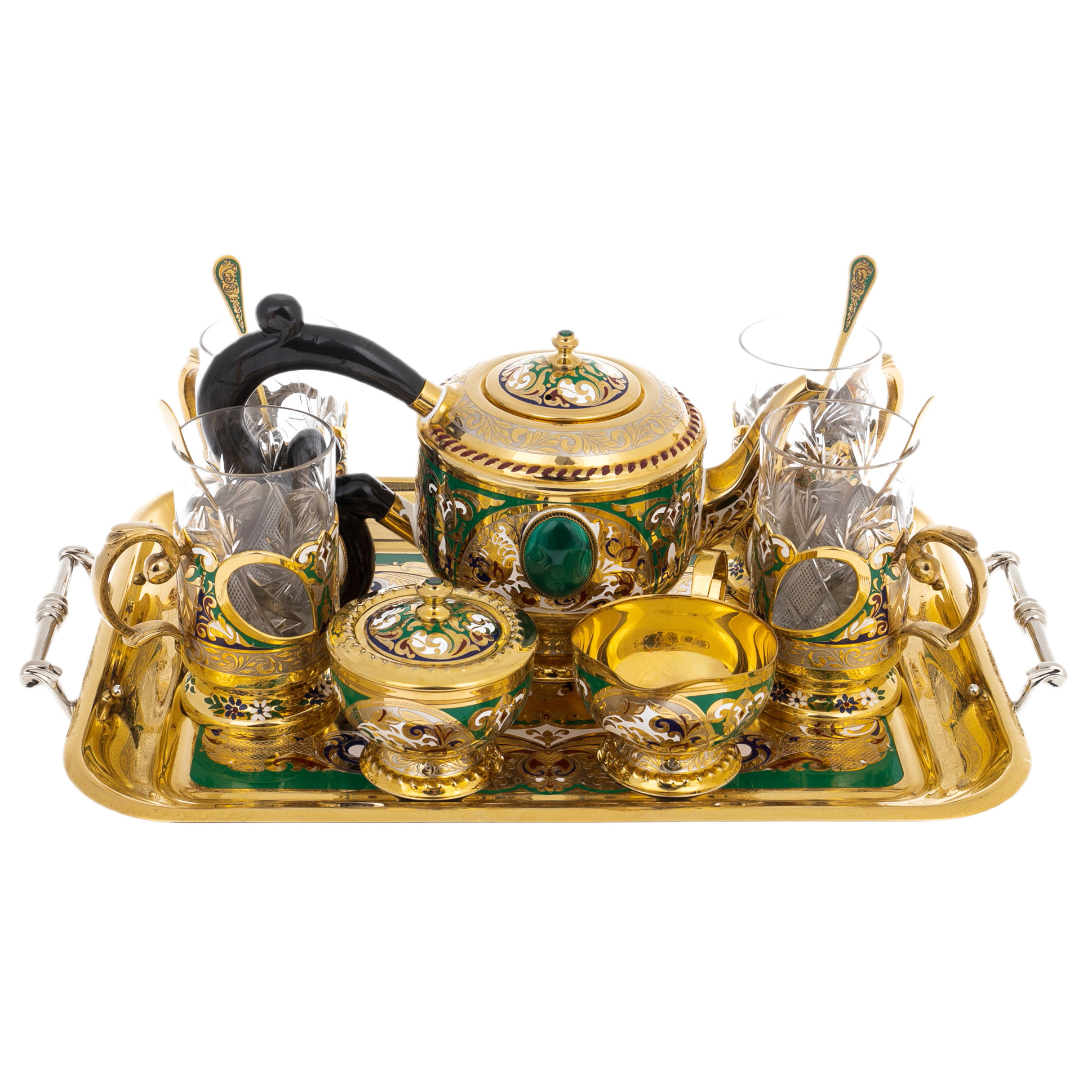 Чайный сервиз "Царевич" с малахитом, на 4 персоны, Златоуст