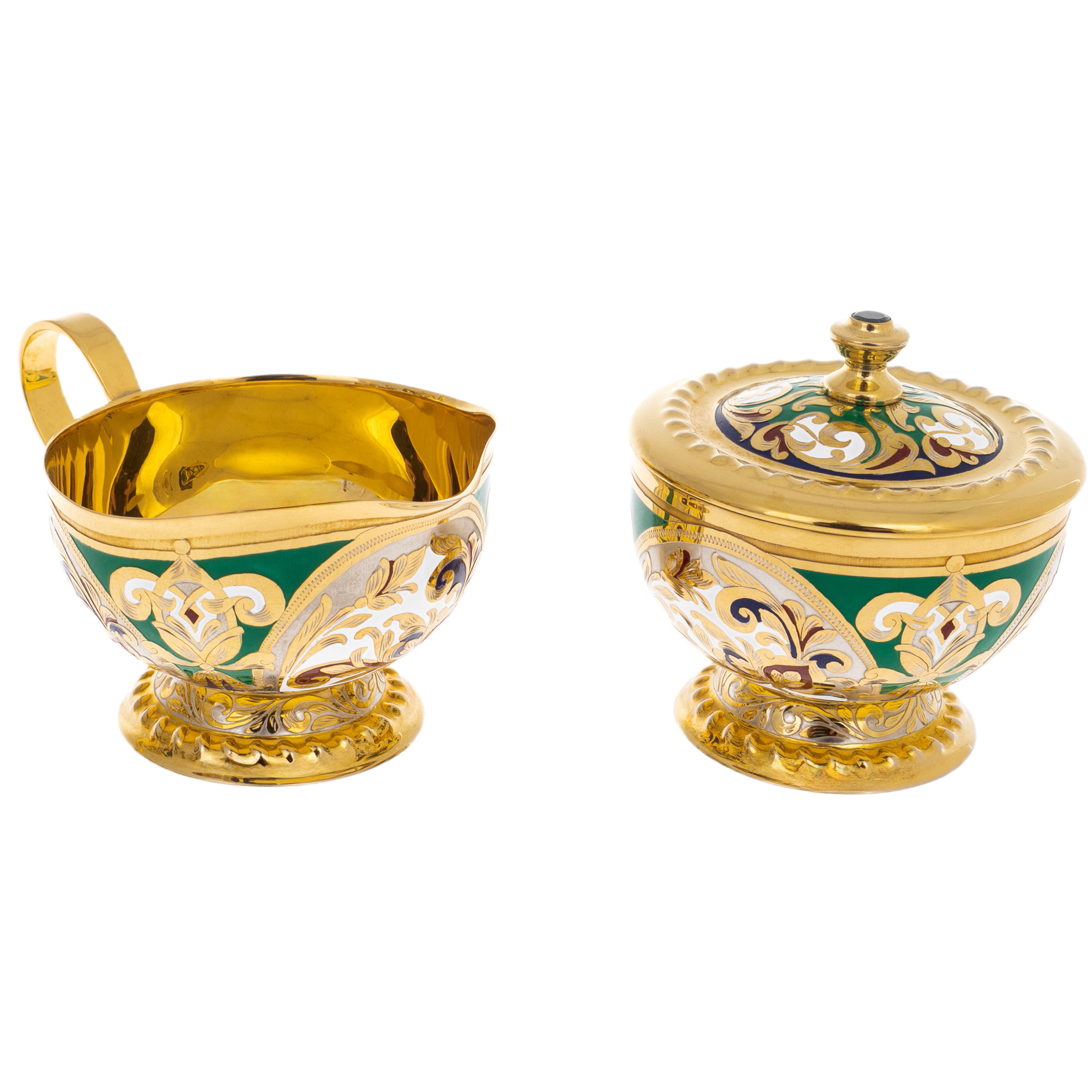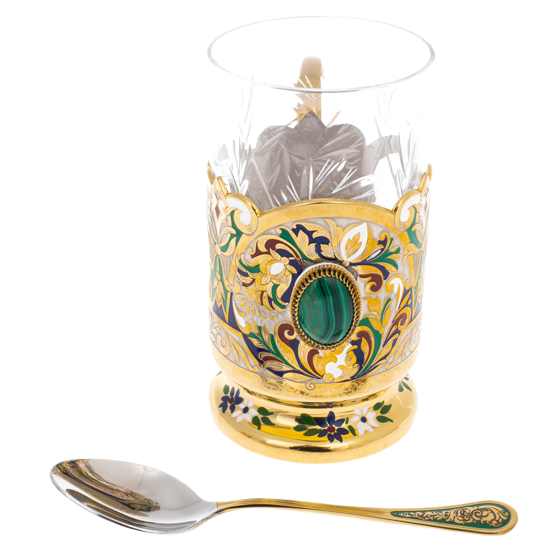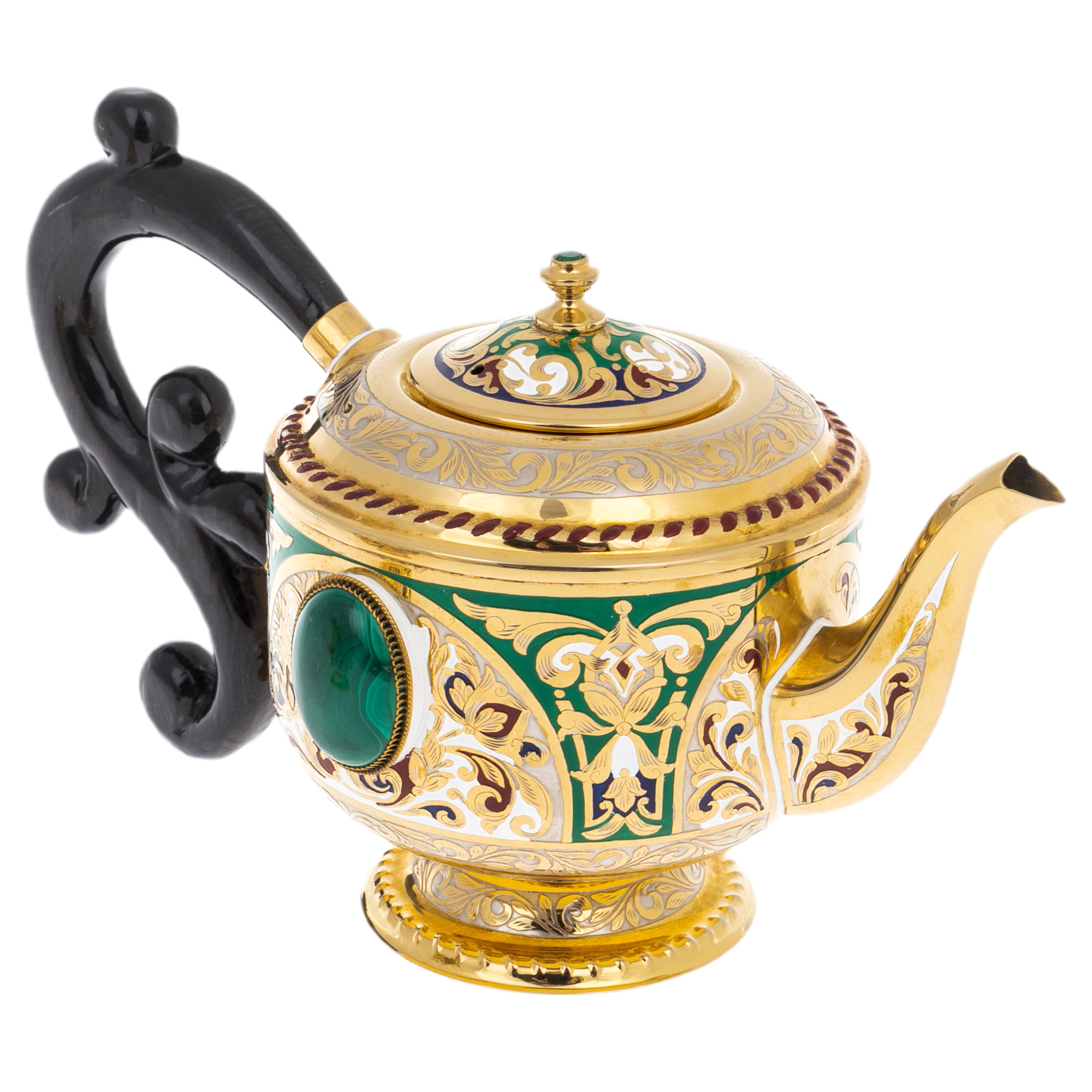 Чайный сервиз "Царевич" с малахитом, на 4 персоны, Златоуст