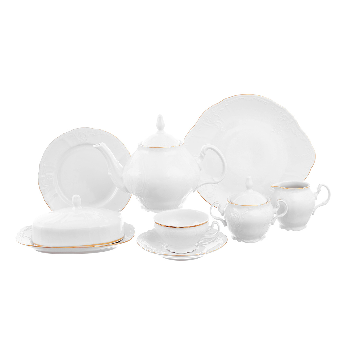 Чайный сервиз из фарфора Bernadotte "Белый узор" на 12 персон, 43 предмета