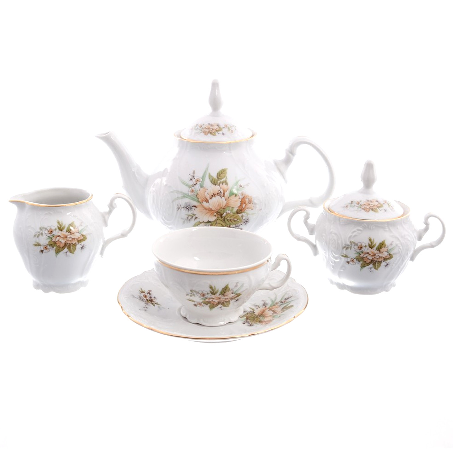 Чайный сервиз из фарфора Bernadotte "Зеленый цветок" на 6 персон, 17 предметов