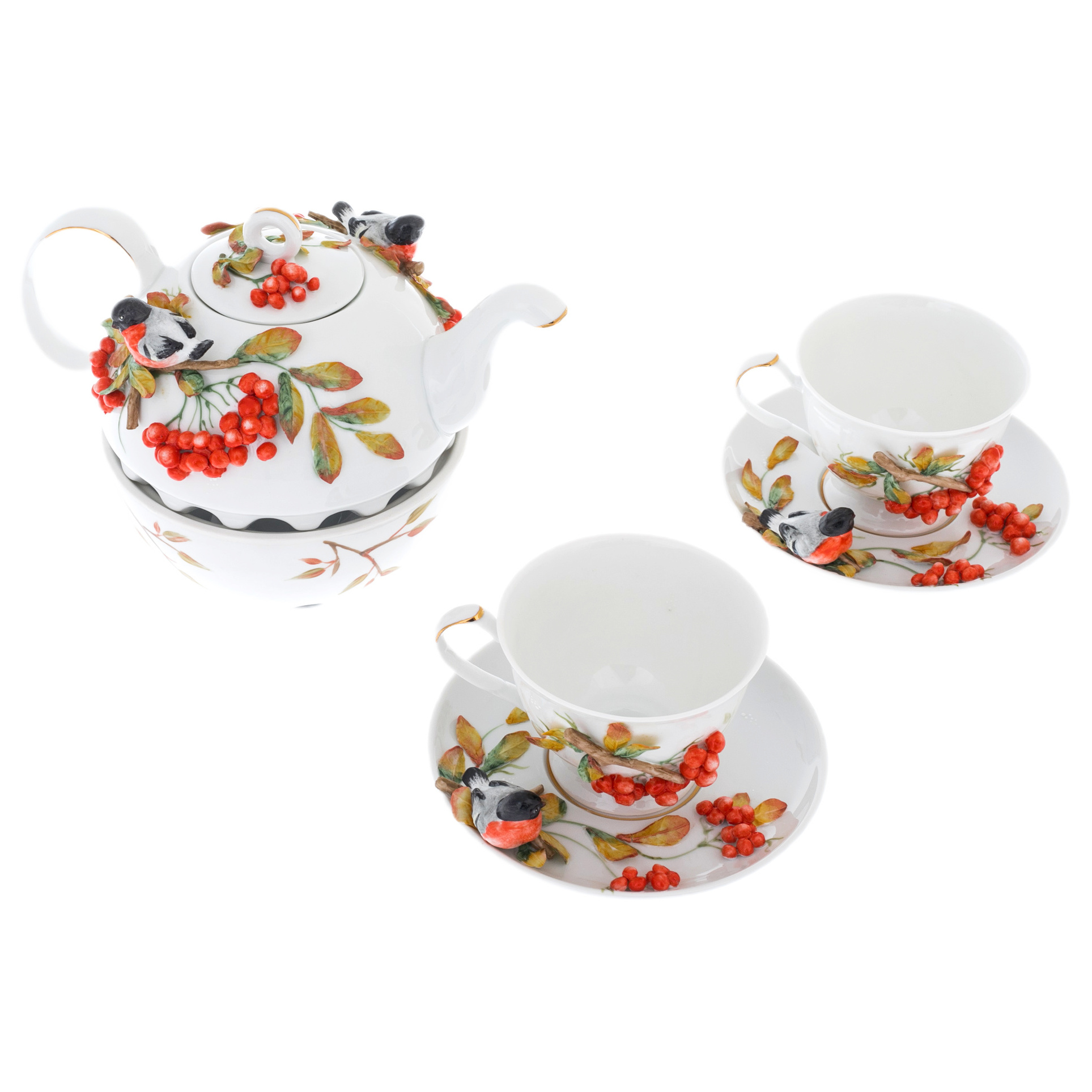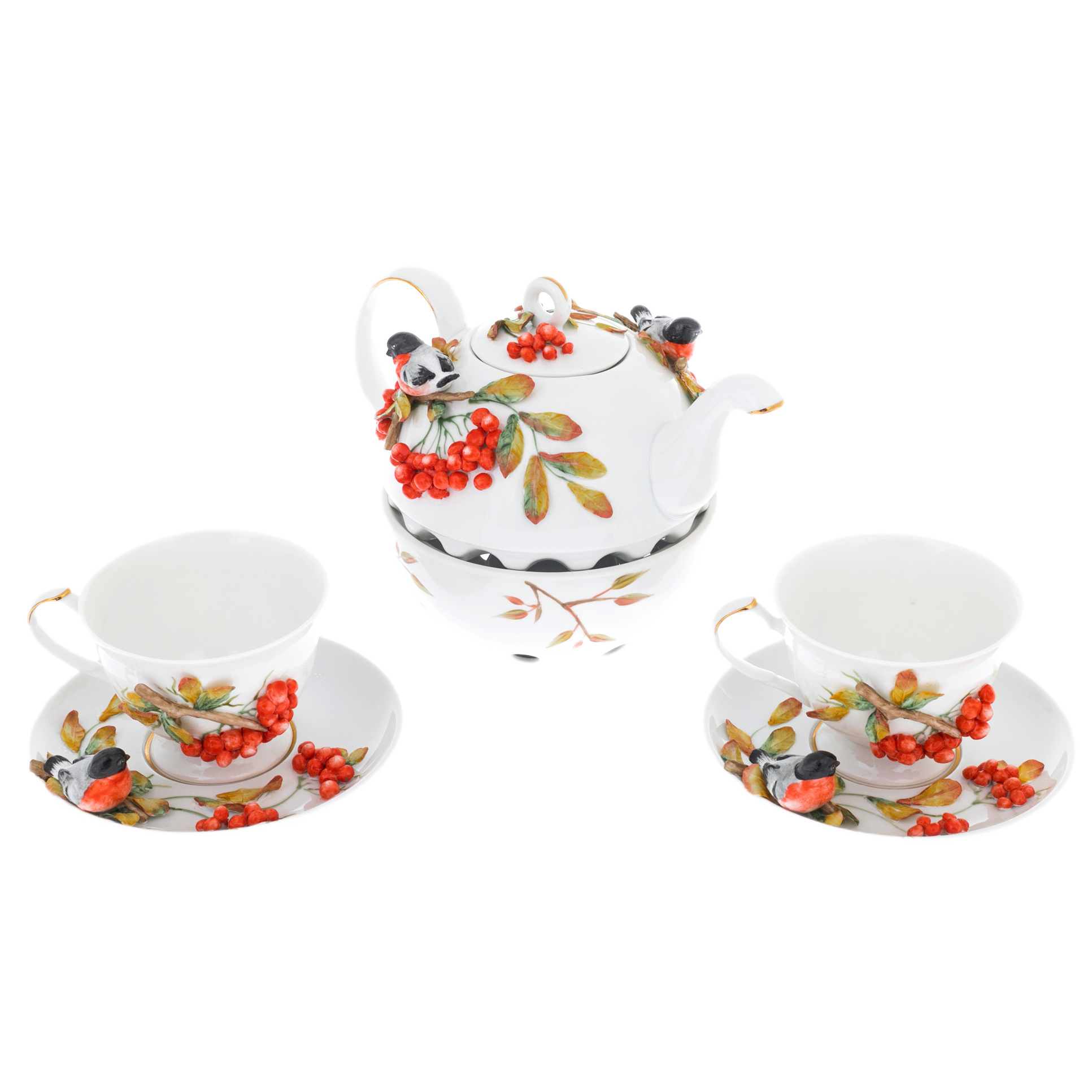 Чайный сервиз из фарфора "Рябина" на 2 персоны