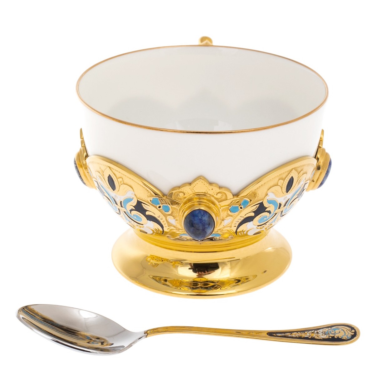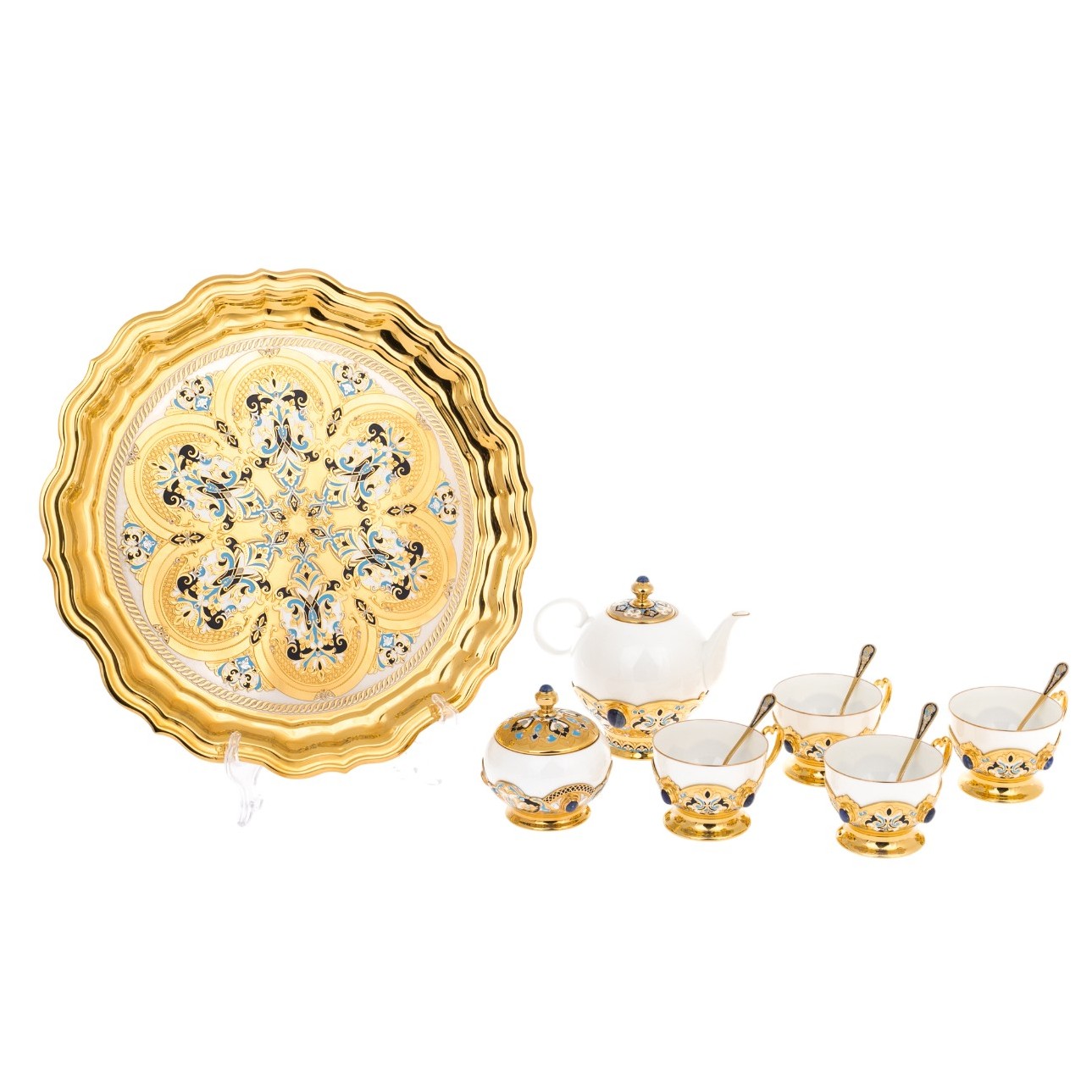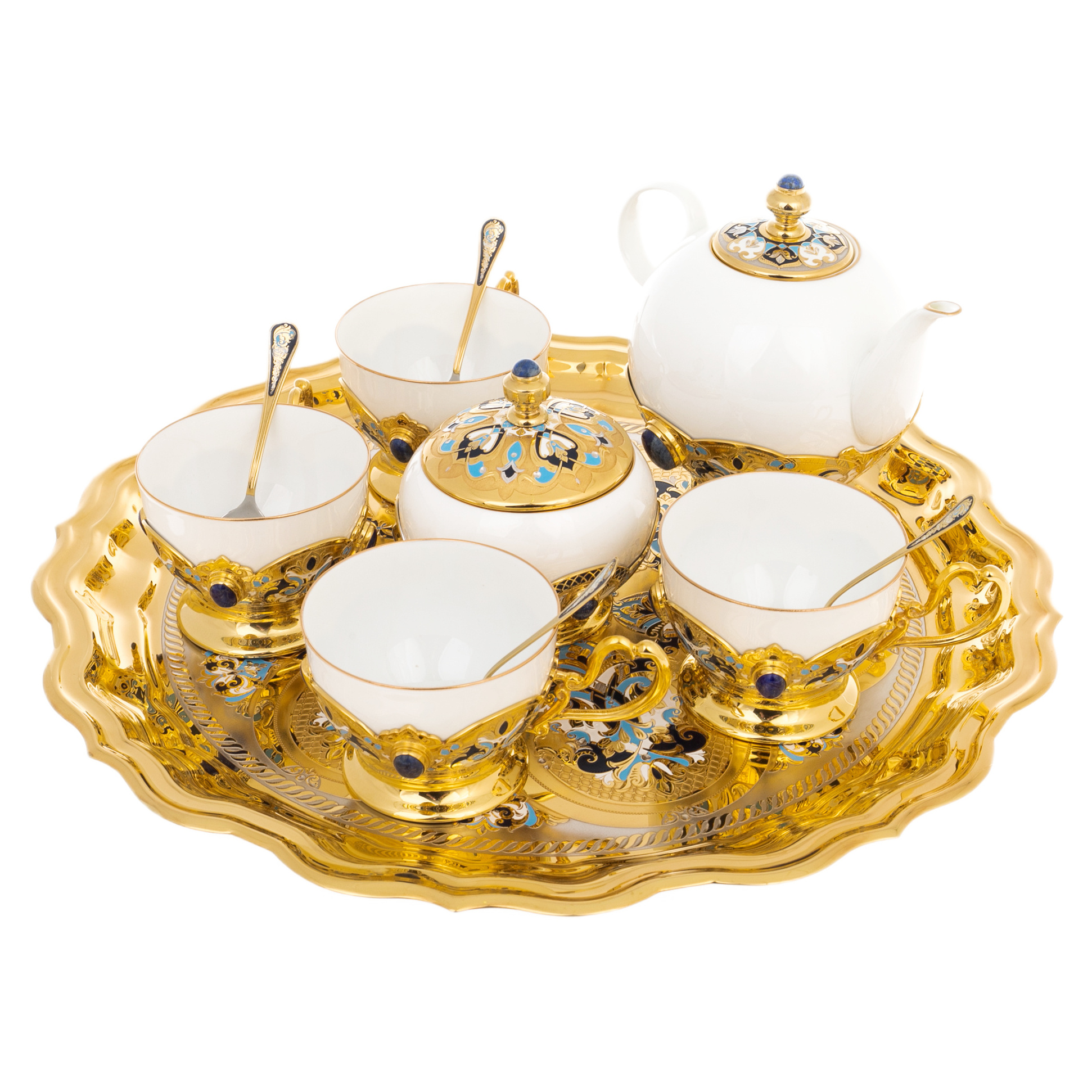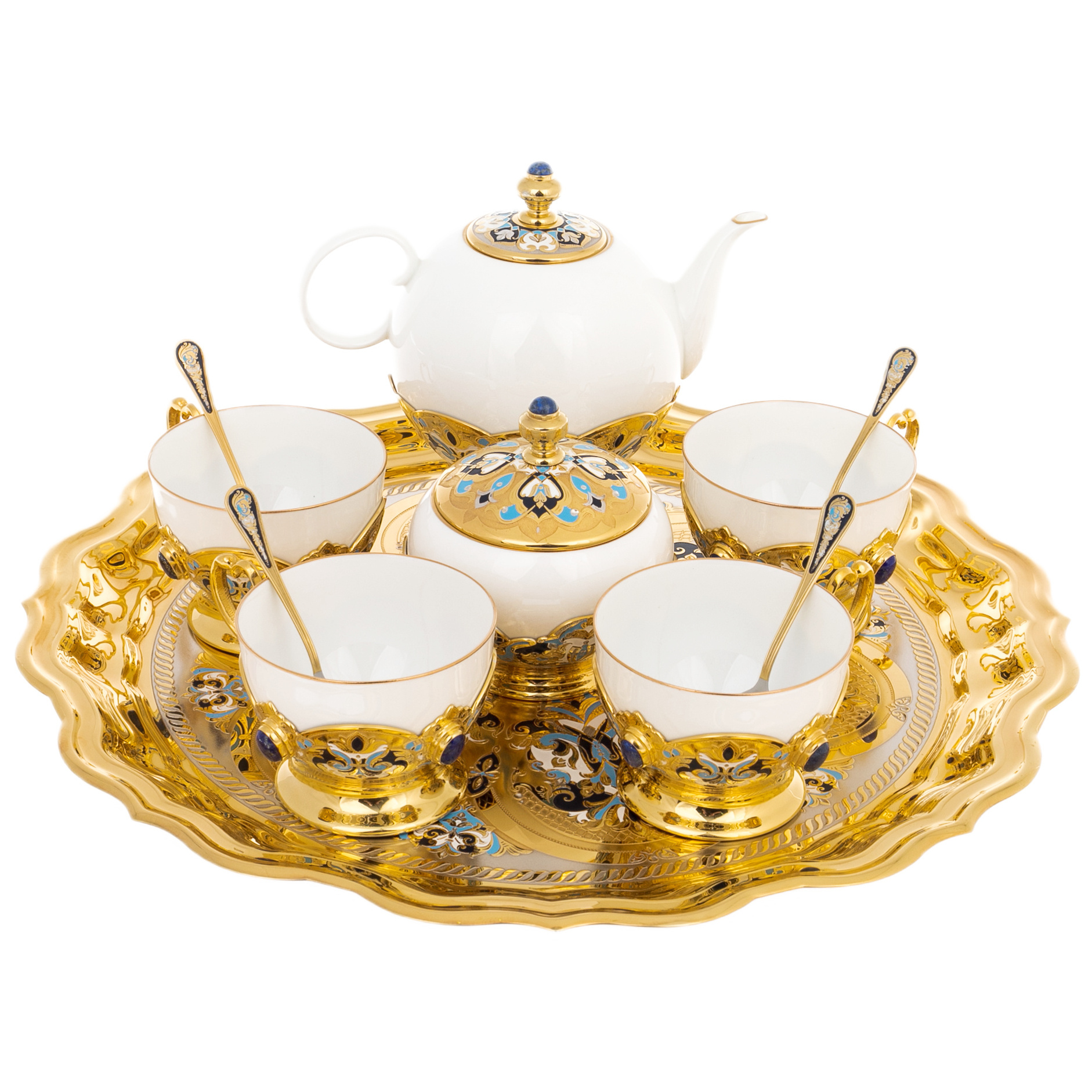 Чайный сервиз "Восточная сказка" с лазуритом и эмалями, на 4 персоны, Златоуст