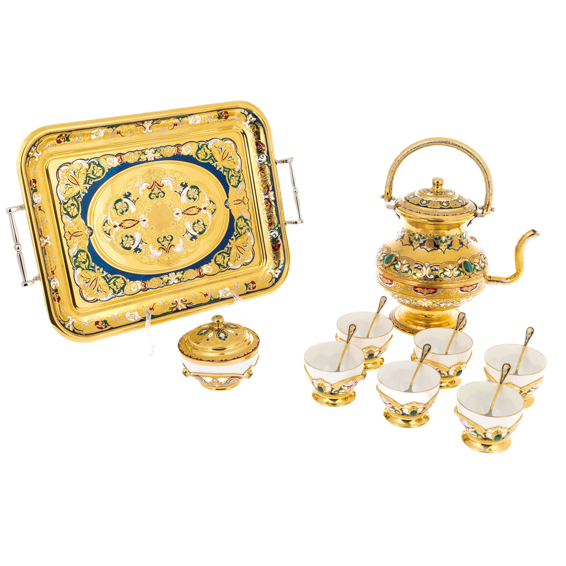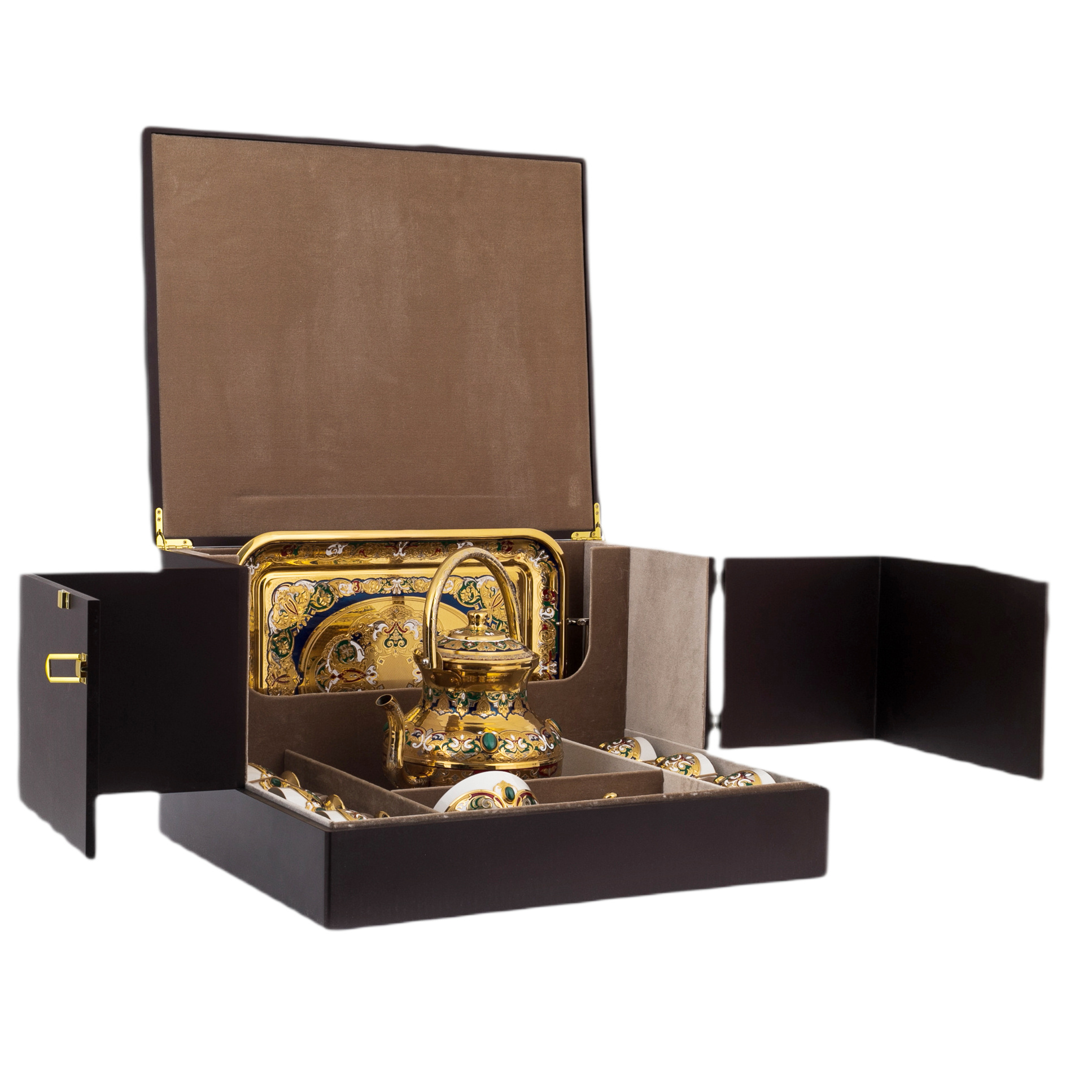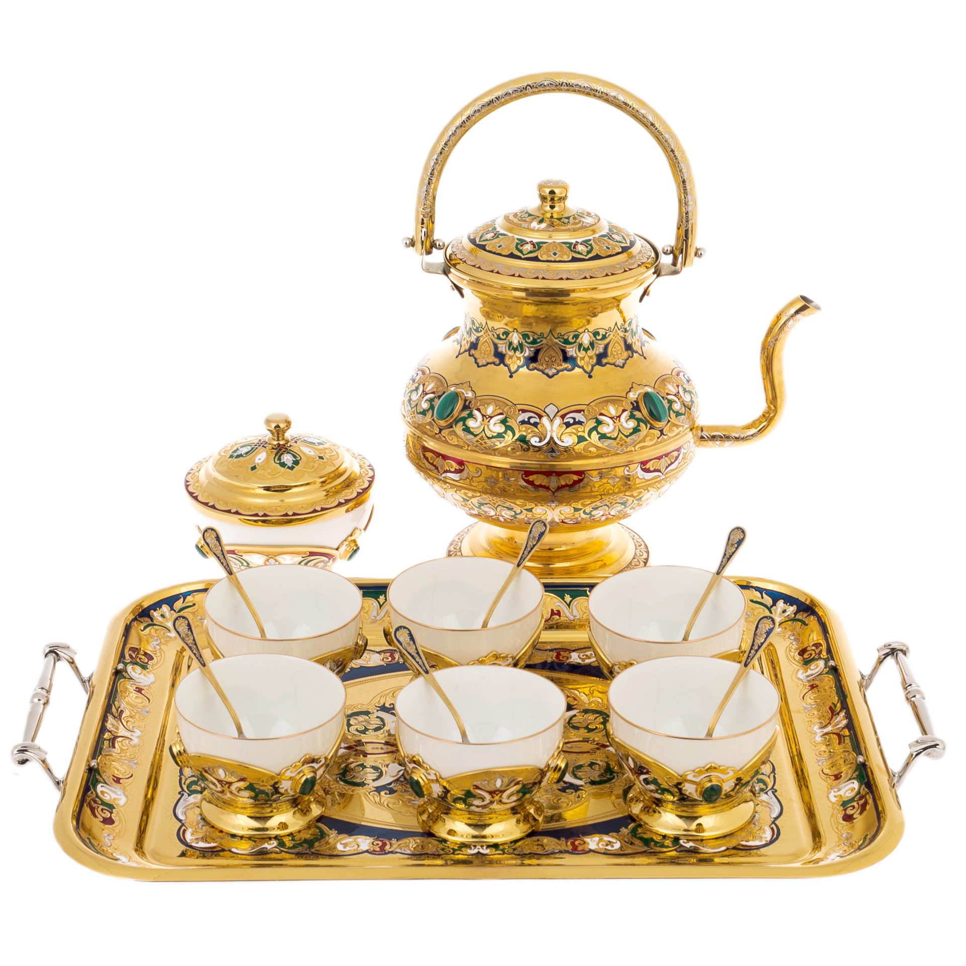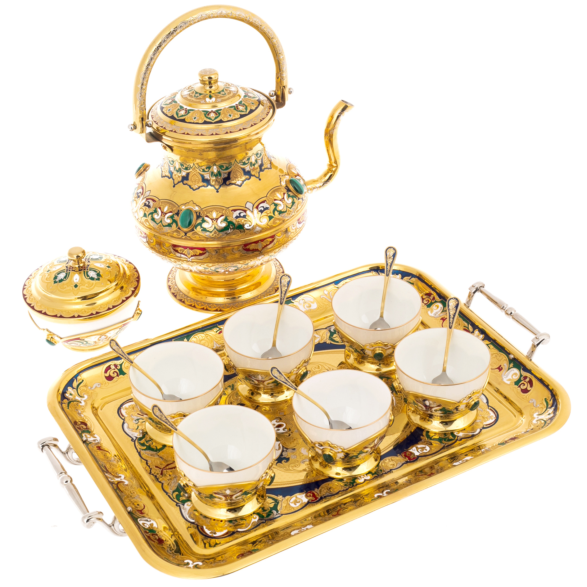 Чайный сервиз "Восточный" с малахитом, на 6 персон, Златоуст