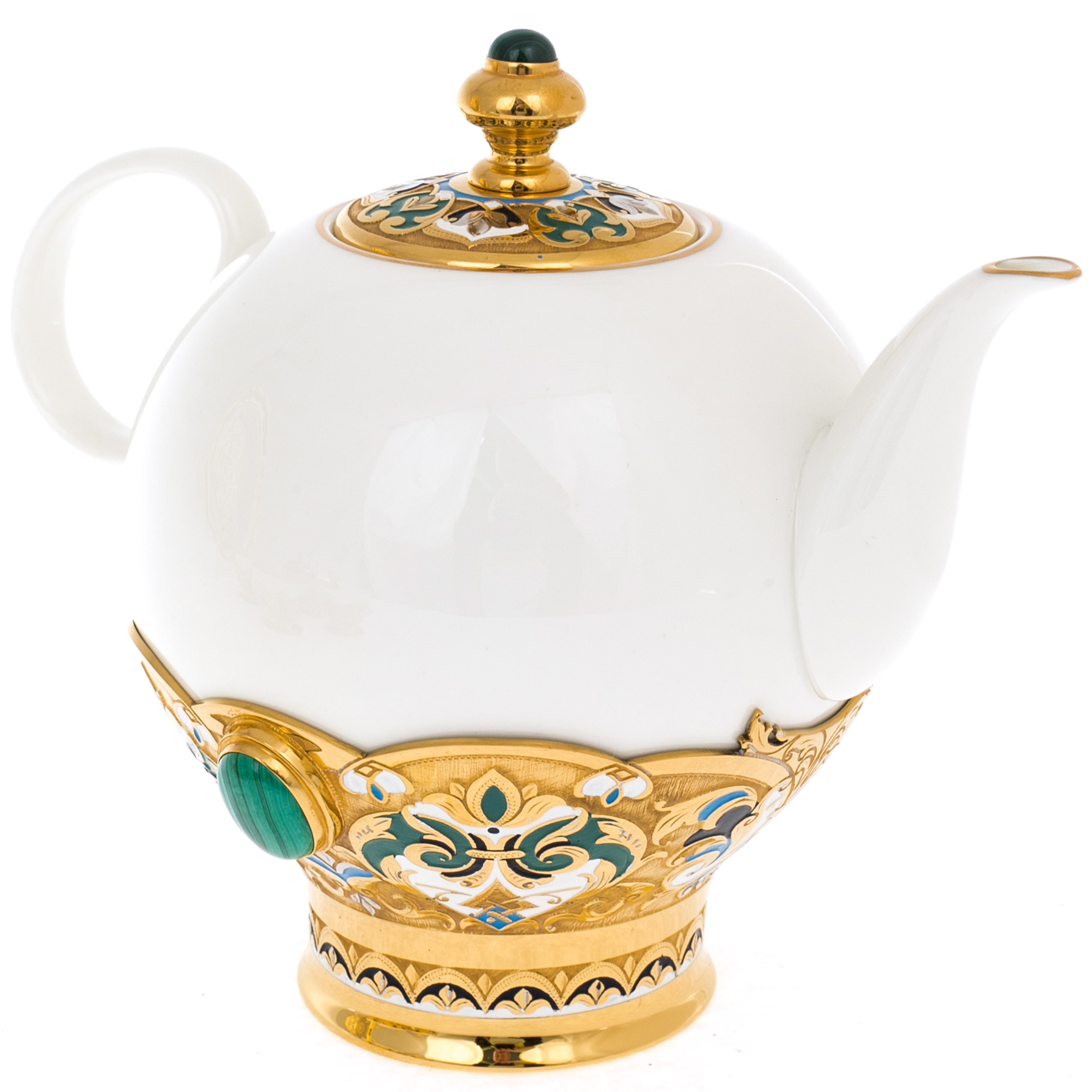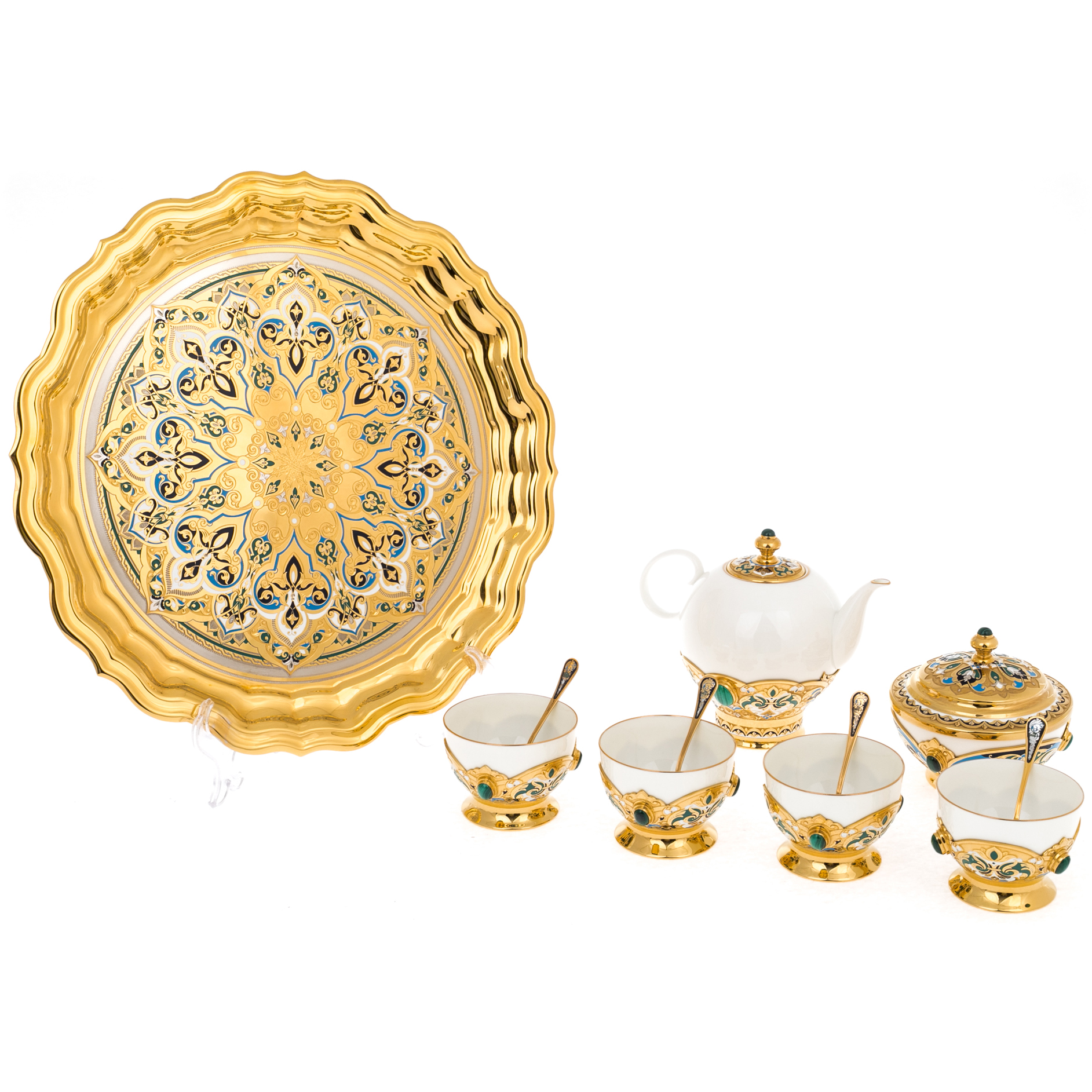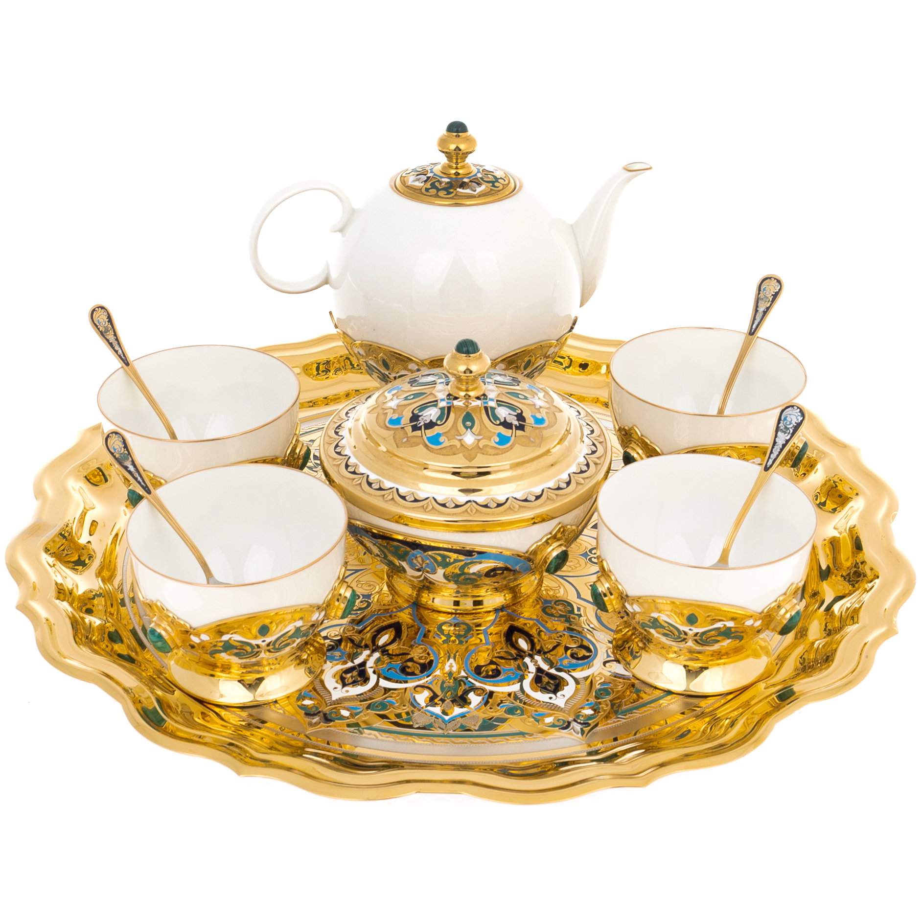 Чайный сервиз "Восточный" с малахитом и эмалями, на 4 персоны, Златоуст