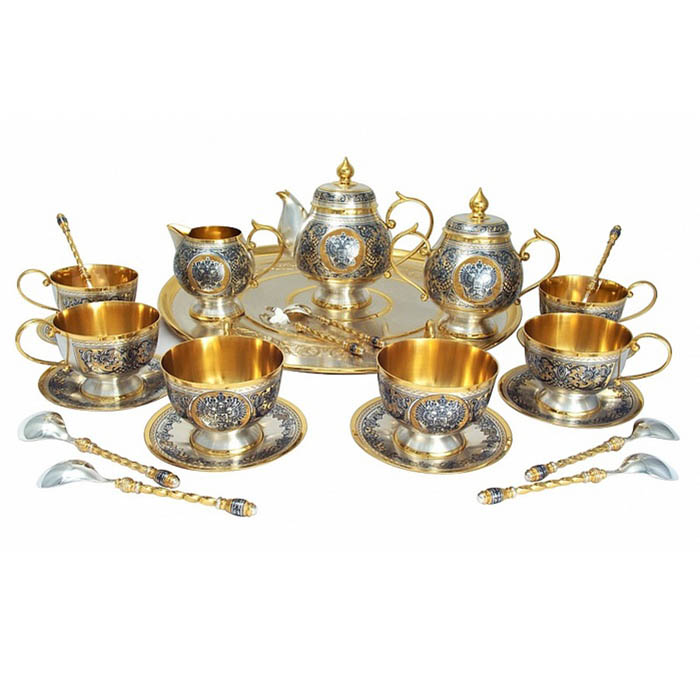 Подарите себе и своим близким возможность наслаждаться каждым мгновением жизни с этим великолепным набором. Он станет не только украшением вашего дома, но и наследием для будущих поколений. В каждом элементе заключена история о роскоши и утонченности, о том, как важно ценить моменты счастья и делиться ими с теми, кто вам дорог. Этот чайный сервиз из серебра – ваше выражение стиля, ваше влияние на окружающий мир и ваша власть над эмоциями.