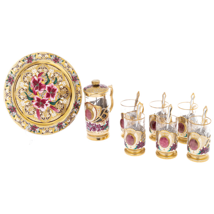 Набор чайный с френч-прессом "Лилии" на 6 персон, Златоуст