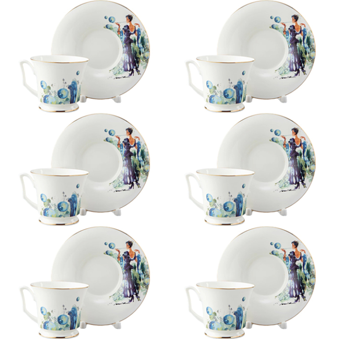 Набор фарфоровых чайных пар "Юлия. Весна/Spring" на 6 персон