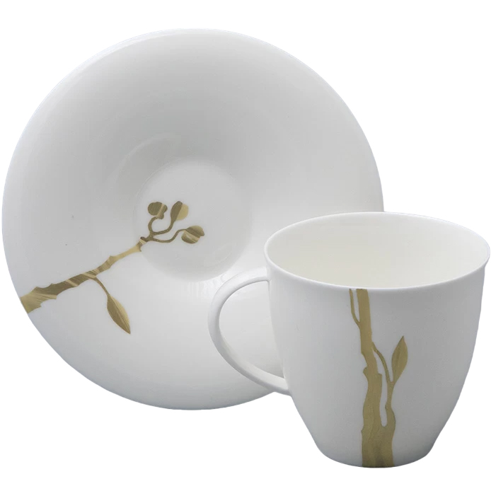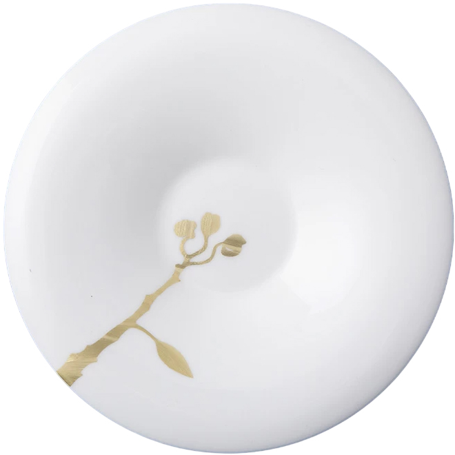 Деликатный растительный рисунок на костяном фарфоре гармонично обыгрывает форму, подчеркивает нежность и белизну костяного фарфора. Название – «Лидия» – было выбрано художником неслучайно. В переводе с греческого оно означает «красивый, благородный» и завершает впечатление от композиции.