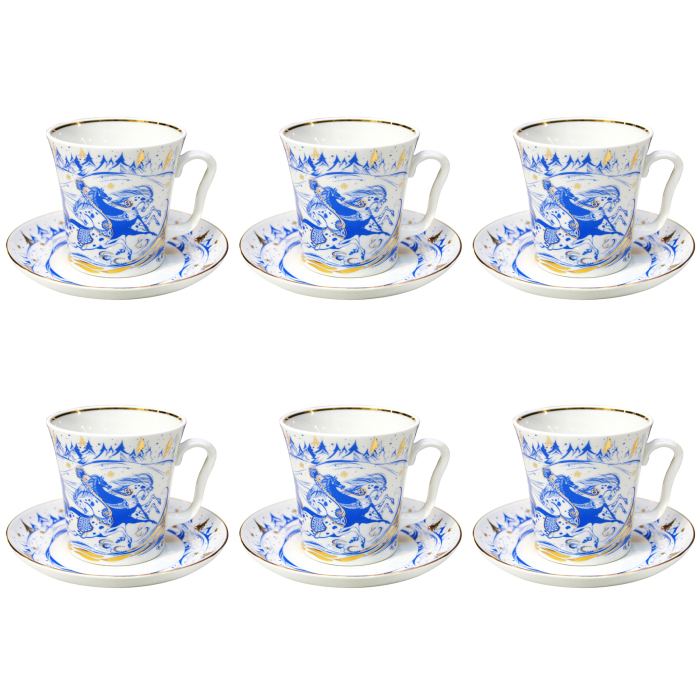 Набор кружек чайных фарфоровых "Ленинград" с рисунком "Тройка" на 6 персон
