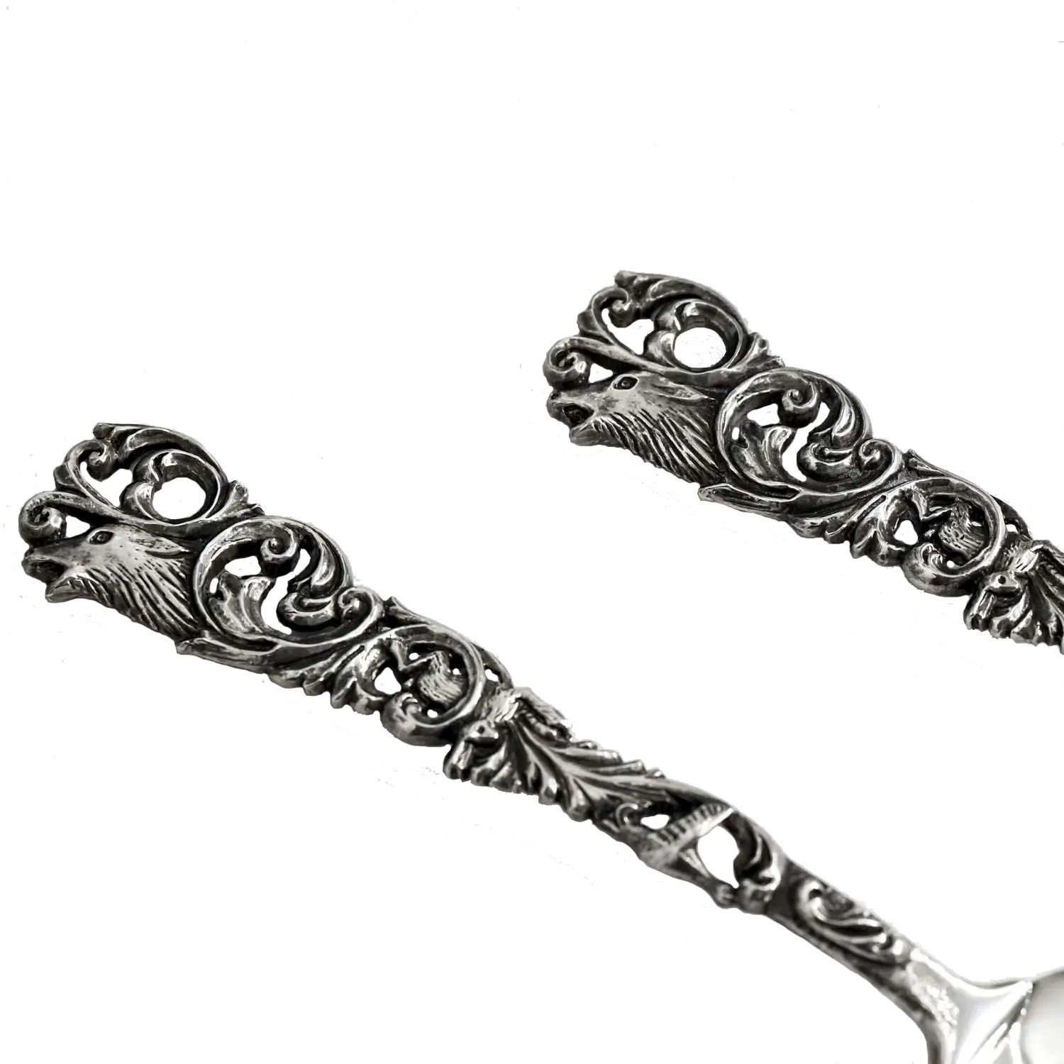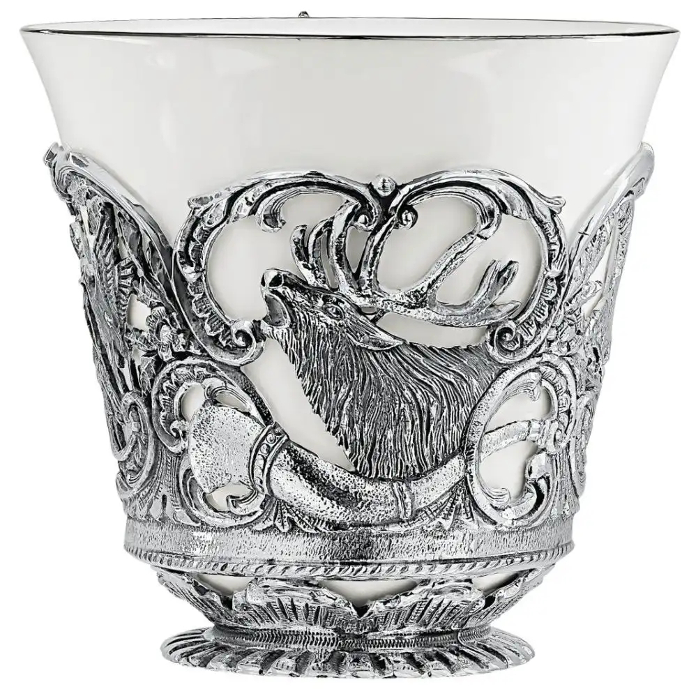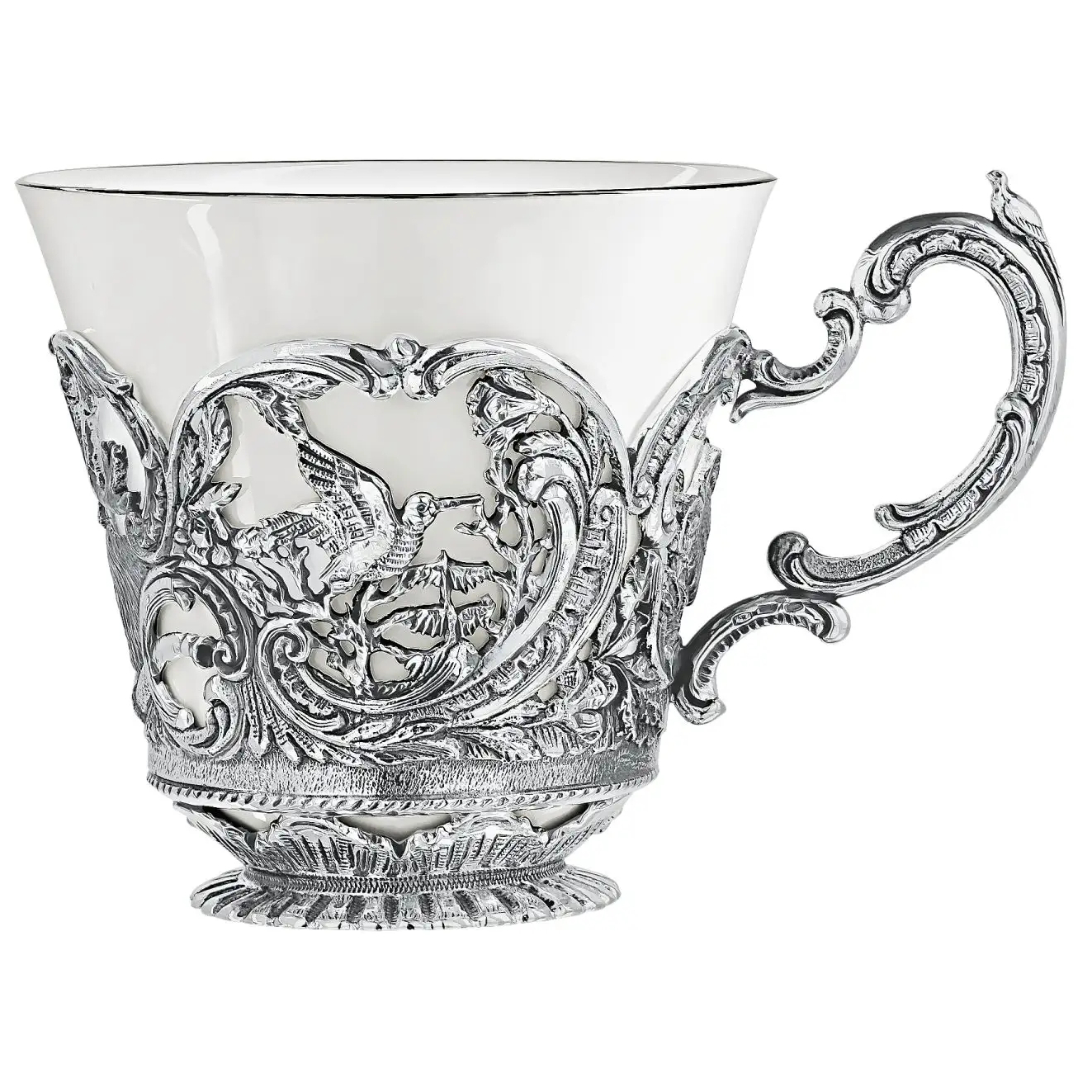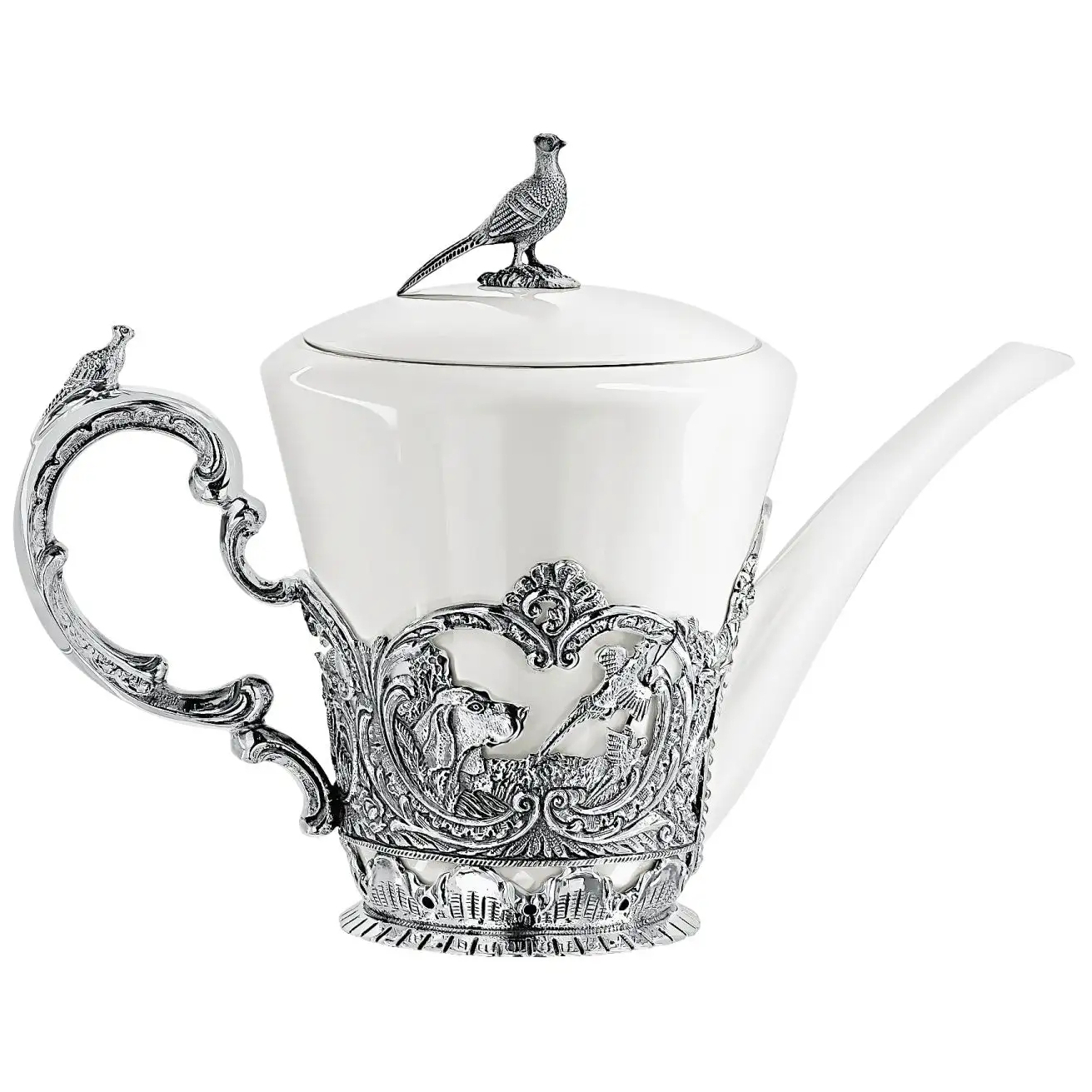 Серебряный чайный набор "Королевская охота": ложка, чашка, чайник