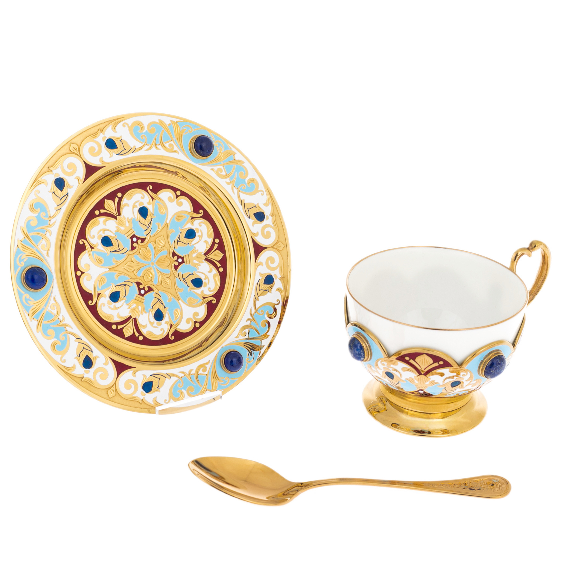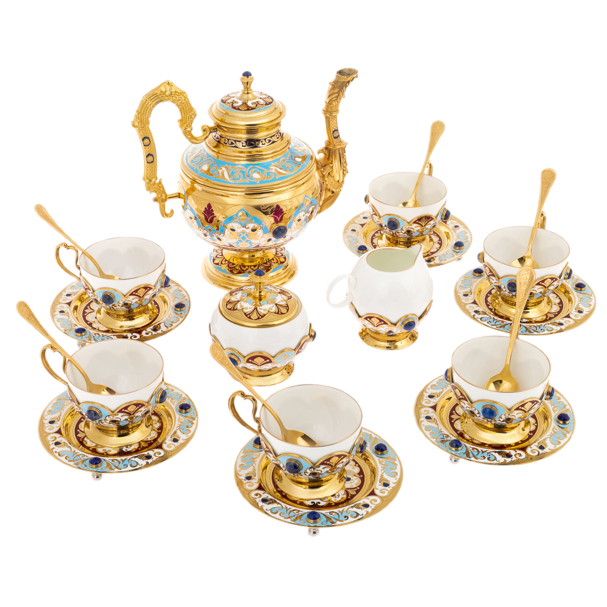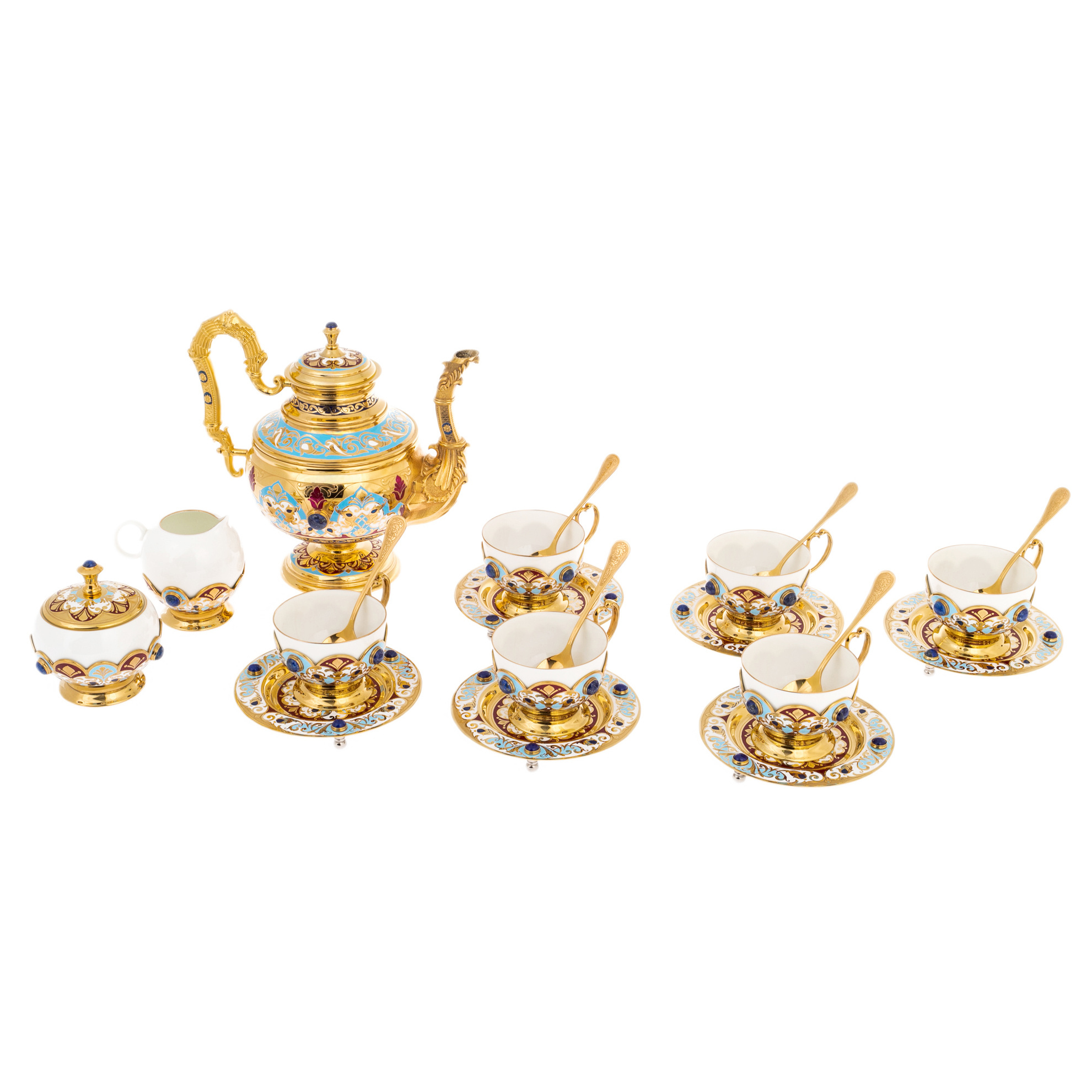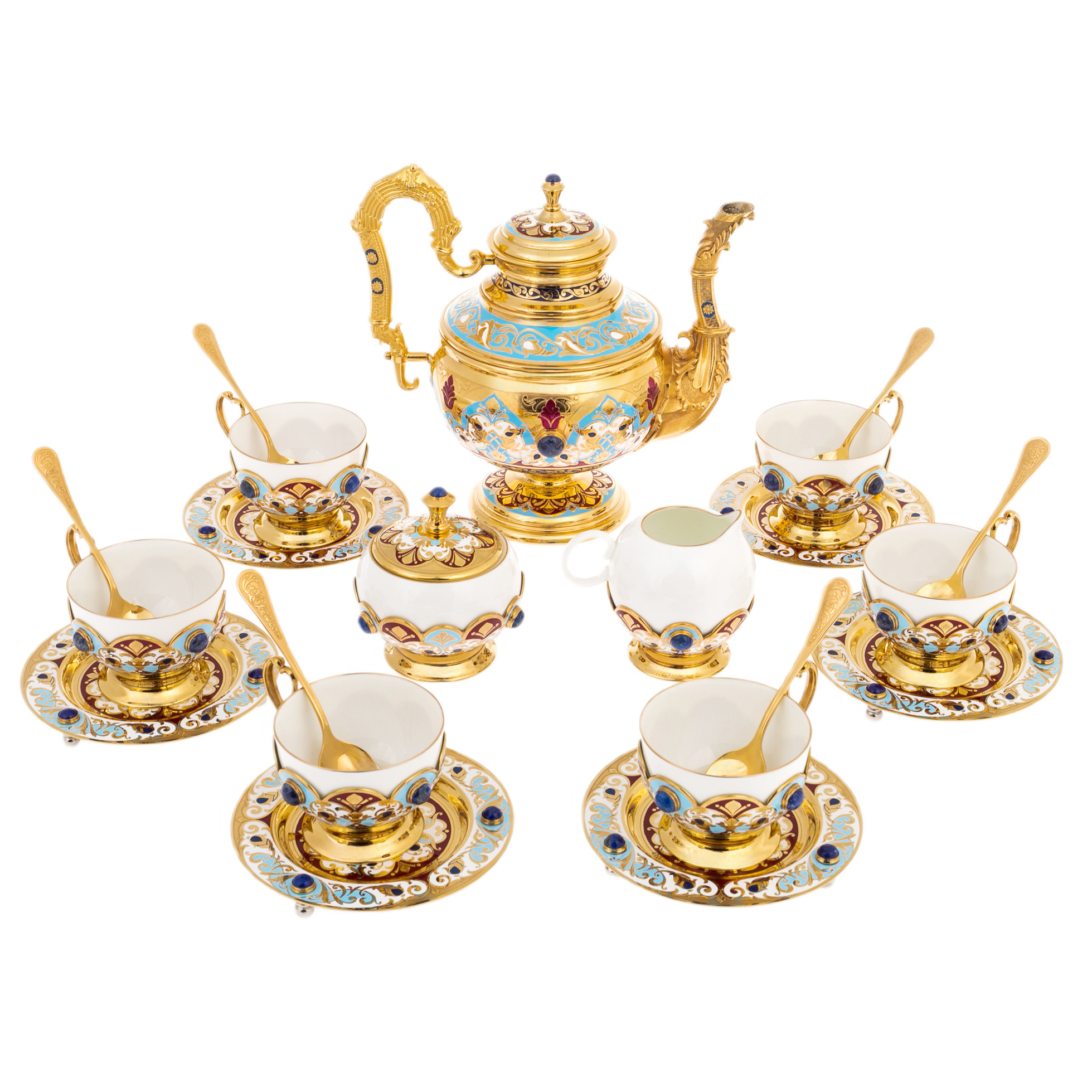 Сервиз чайный "Арабская ночь" с голубой эмалью, на 6 персон, Златоуст