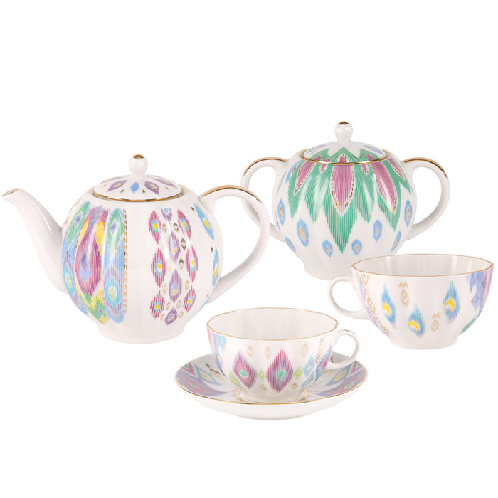 Сервиз чайный из фарфора "Перо павлина" на 6 персон, 14 предметов