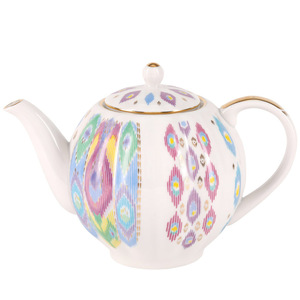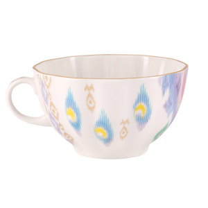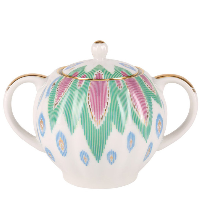 Неизгладимое впечатление производит самобытная восточная красота коллекции, заключающаяся в насыщенных цветах, плавных переходах оттенков, асимметрии рисунков, таких же экзотичных, как оперение диковинной птицы.
