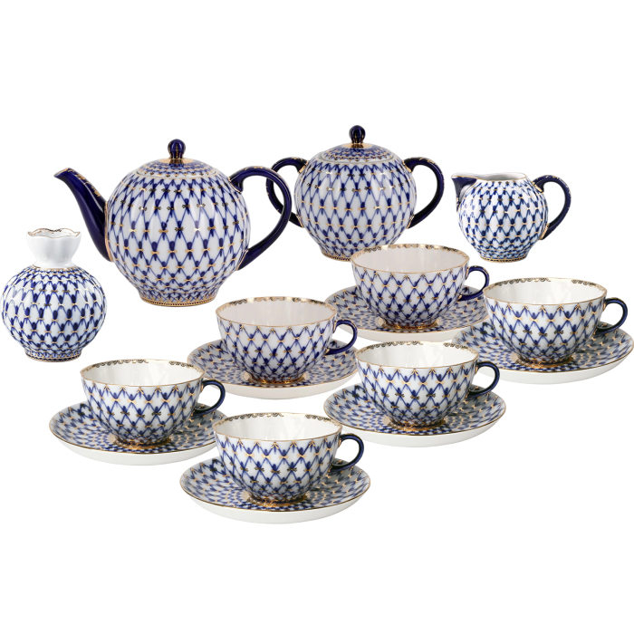 Сервиз чайный "Кобальтовая сетка" формы Тюльпан, на 6 персон, 16 предметов