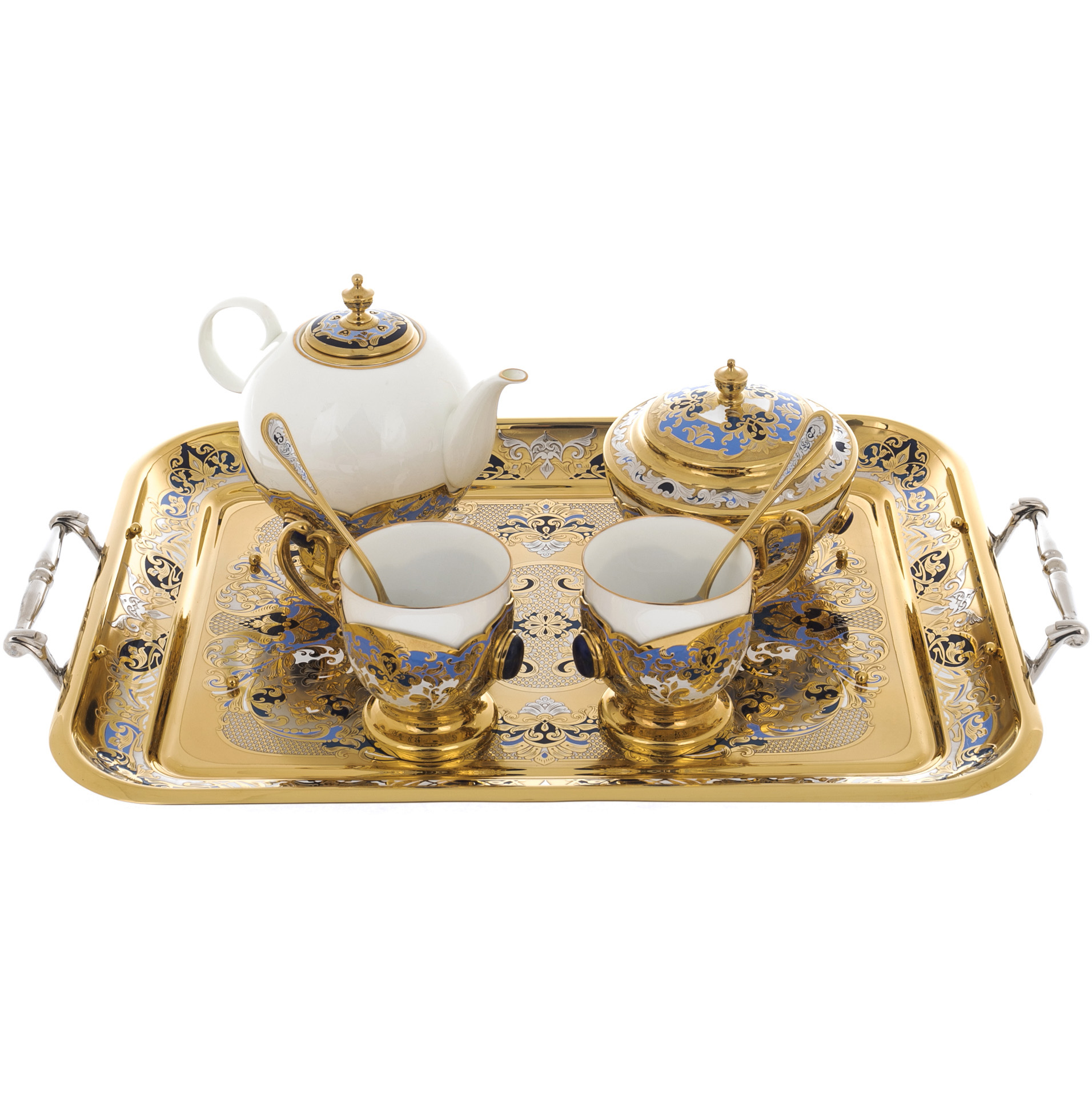 Сервиз чайный "Ландыш" с лазуритом, на 2 персоны, Златоуст