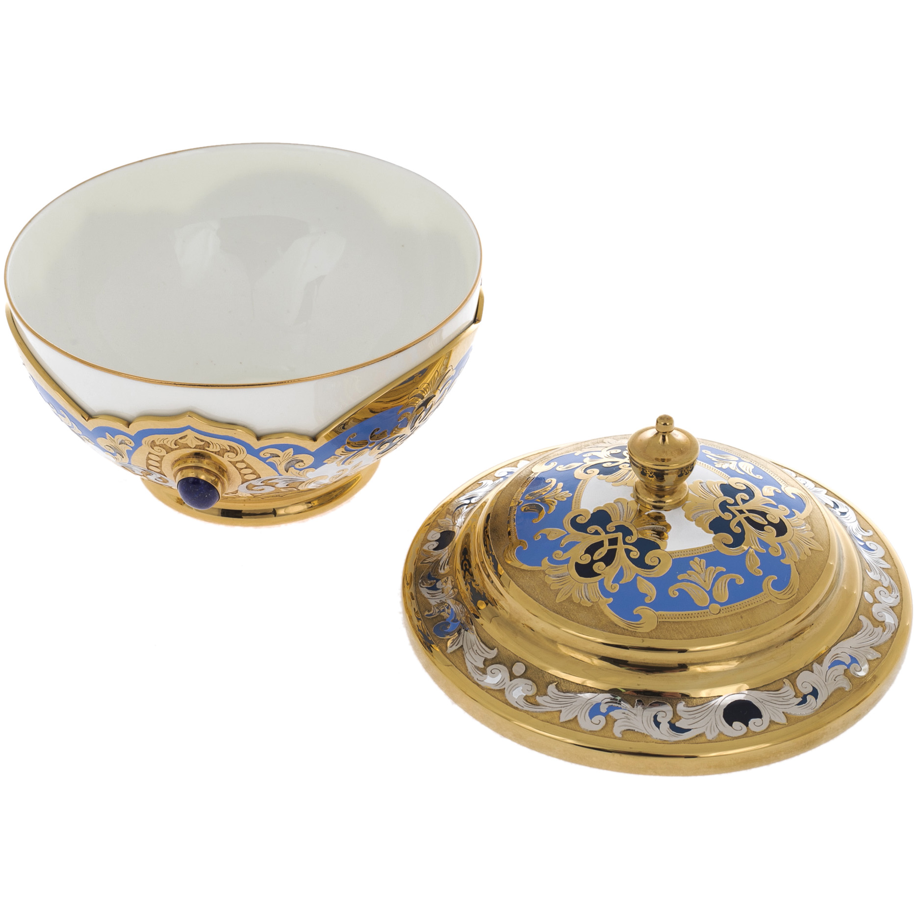 Материалы:фарфор, латунь, никель, эмали, лазурит, позолота.