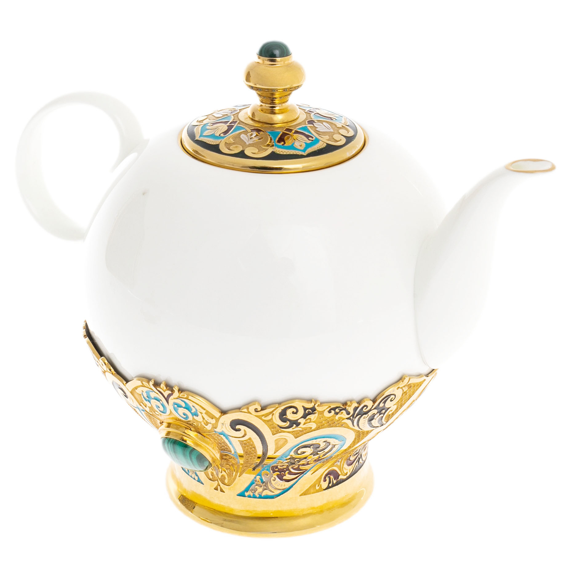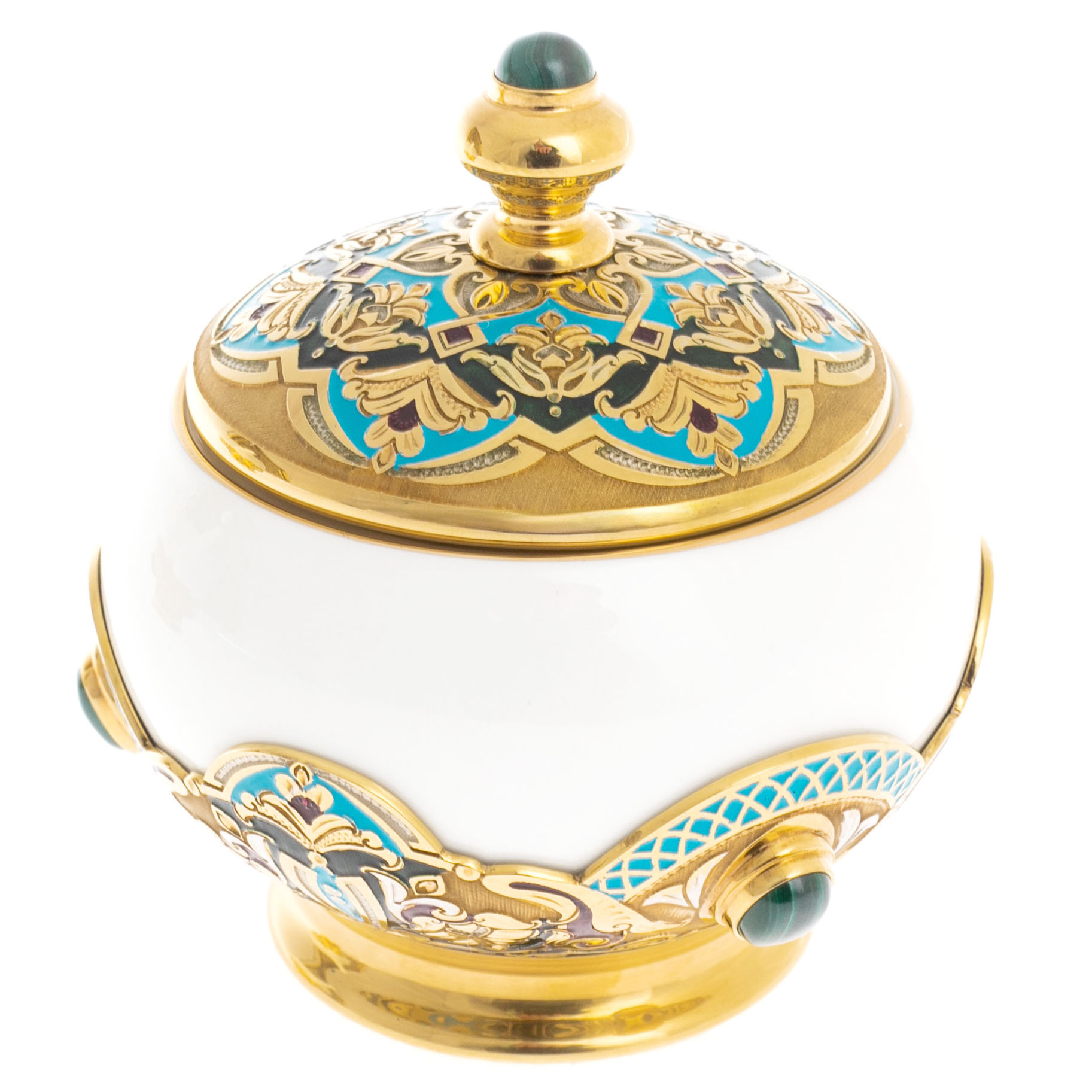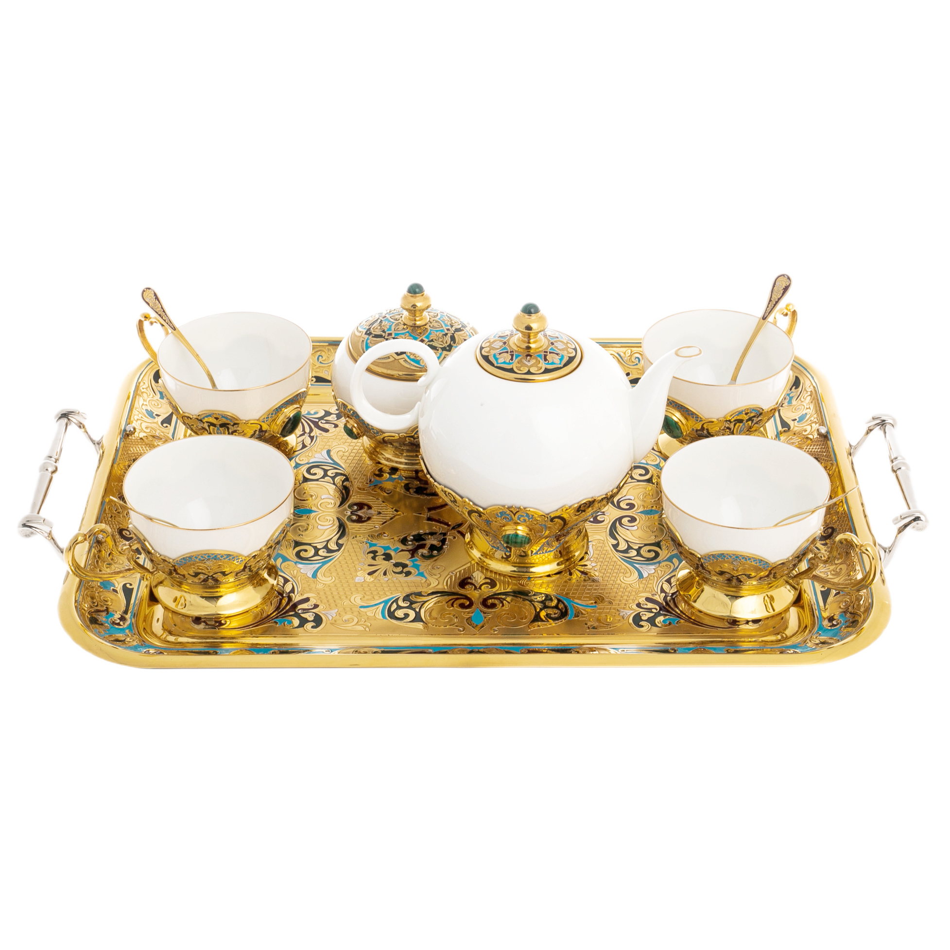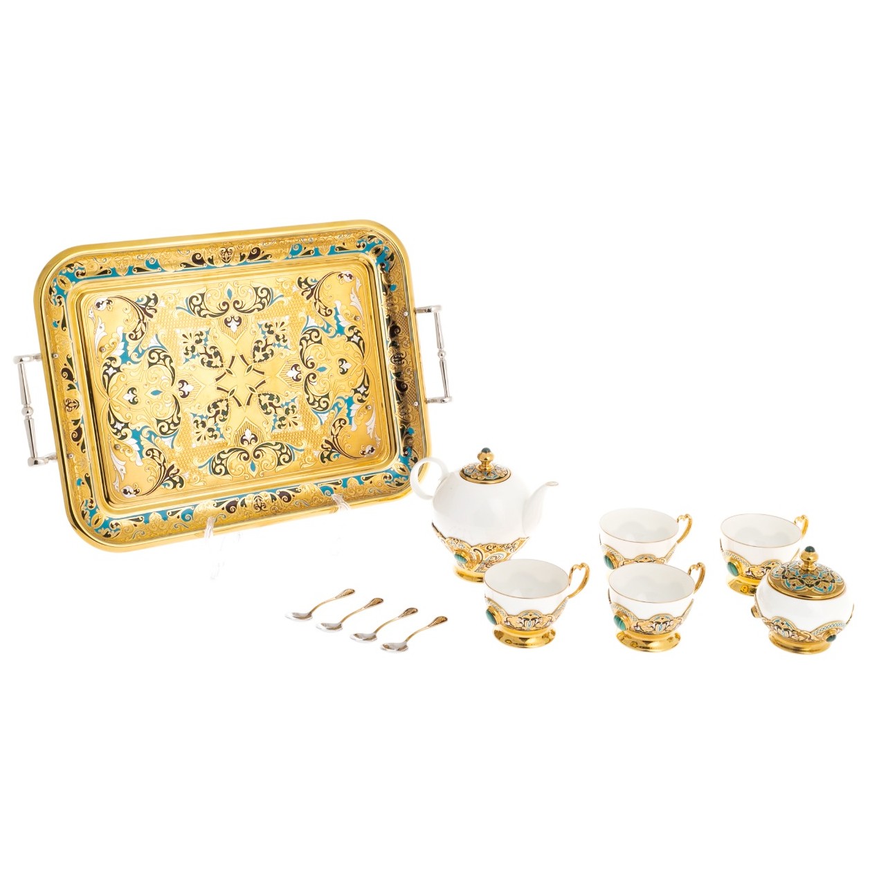 Сервиз чайный "Ландыш" с малахитом, на 4 персоны, Златоуст