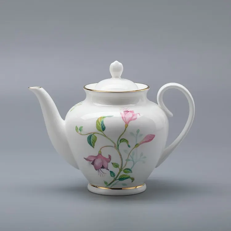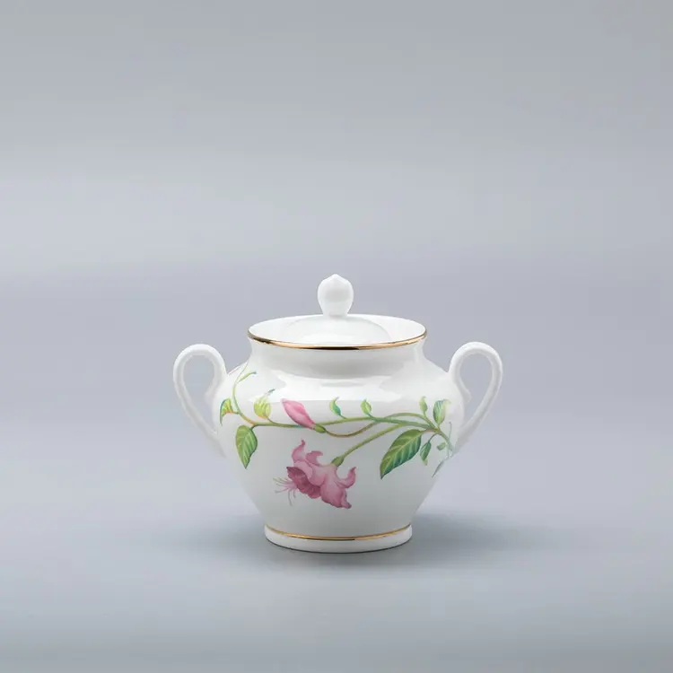 Декоративный мотив коллекции «Сад мечты» – это нежный цветок фуксии. Автор рисунка, Ольга Будашова, неспроста выбрала именно это экзотическое растение. Считается, что фуксия привлекает удачу, а также является пожеланием любви и счастья. Декор выполнен в полупрозрачных тонах и напоминает акварельную живопись. Такой рисунок замечательно сочетается с материалом – воздушным костяным фарфором – и подчеркивает его достоинства. Для особой декоративности все предметы коллекции украшены золотыми отводками.