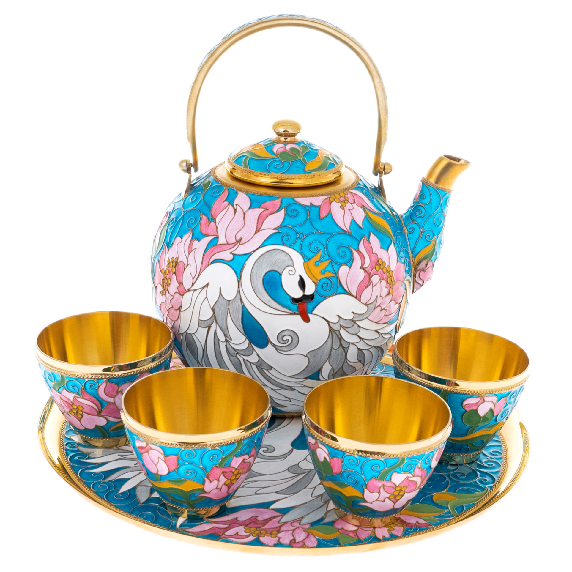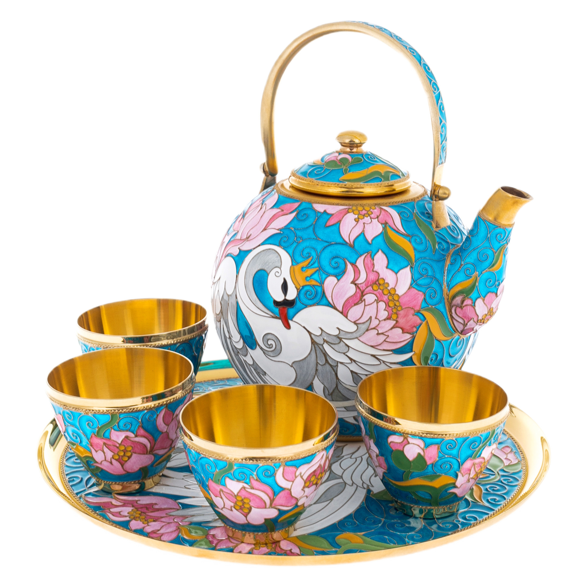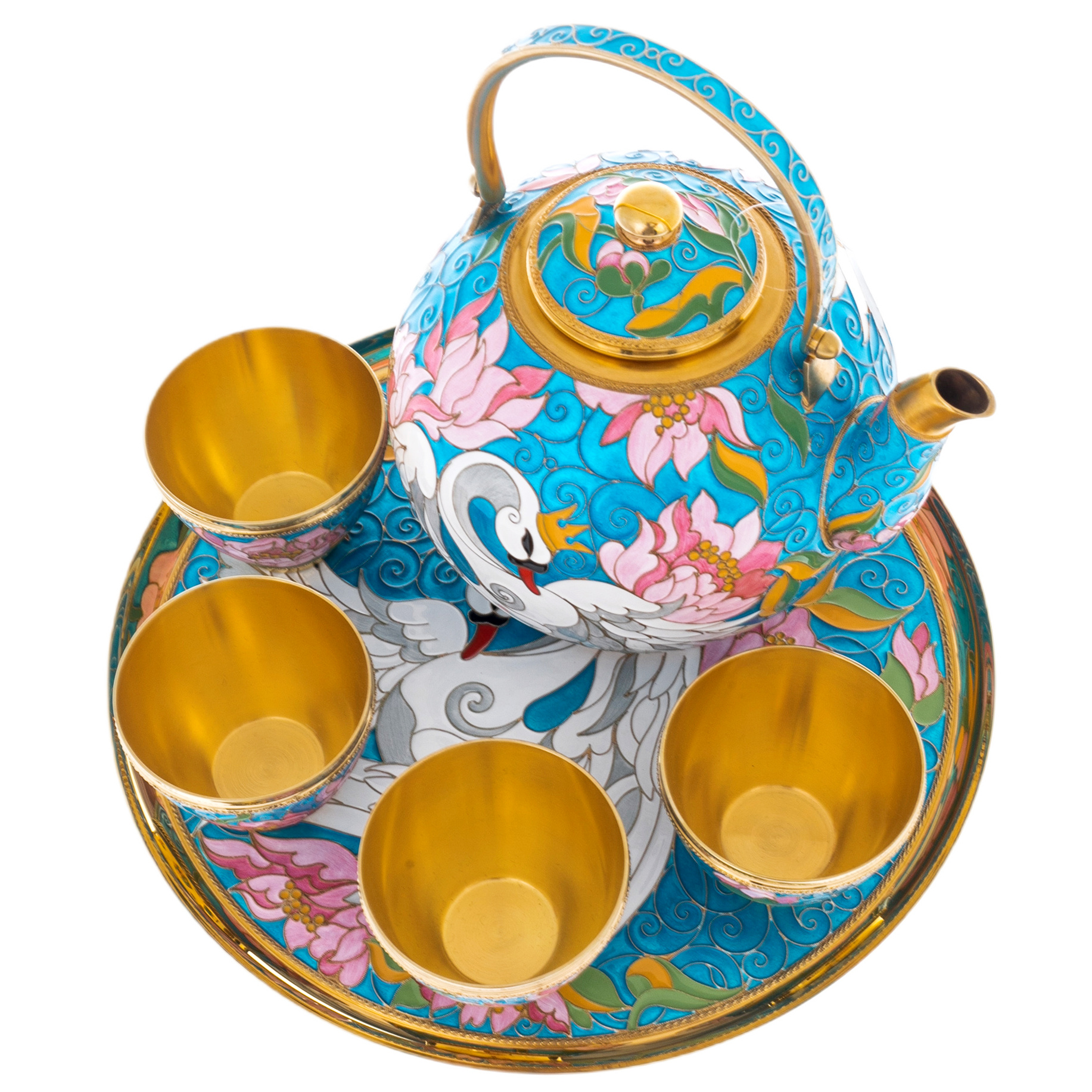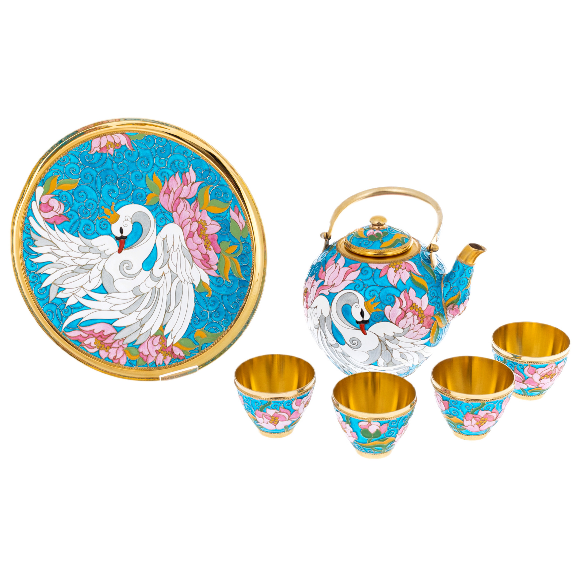 Сервиз чайный серебряный "Царевна-Лебедь" на 4 персоны, 6 предметов