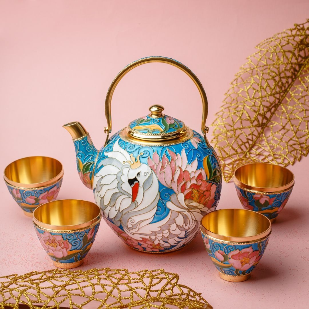 Комплектация: чайник, пиала — 4 шт., поднос.