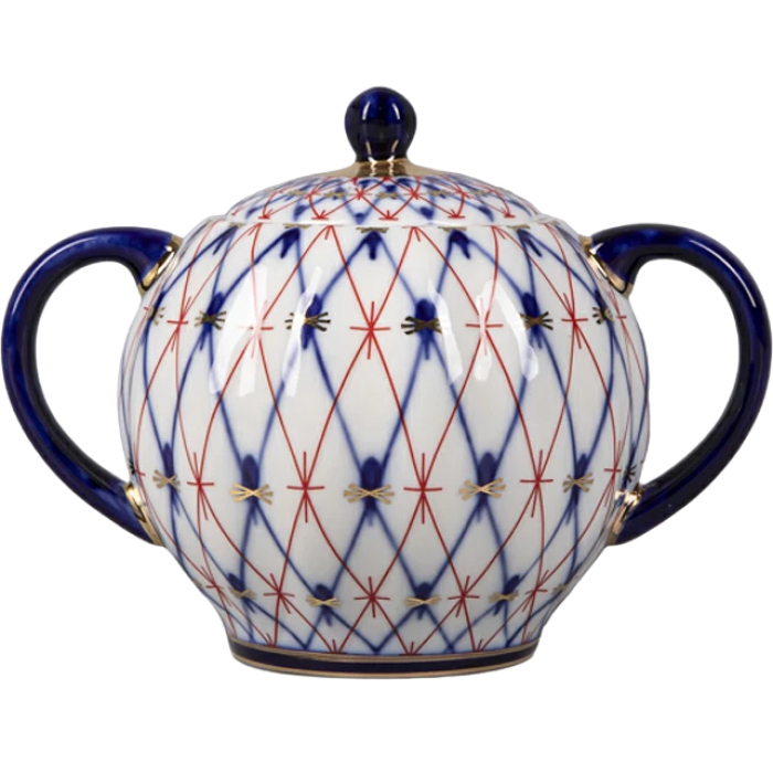 «Сетка 1950» – новый взгляд на один из шедевров великой Анны Яцкевич. Форма чайника «Тюльпан» расположила на себе ритмичный сетчатый орнамент. Простое и, одновременно, оригинальное решение составляют два контрастных классических цвета: красный и синий. Их сдержанный «диалог» по-новому обыгрывает спокойную дольчатую форму. Такой декор, дополненный золотыми акцентами и насыщенным кобальтом носика и ручки чайника, рождает стильный предмет на все времена.