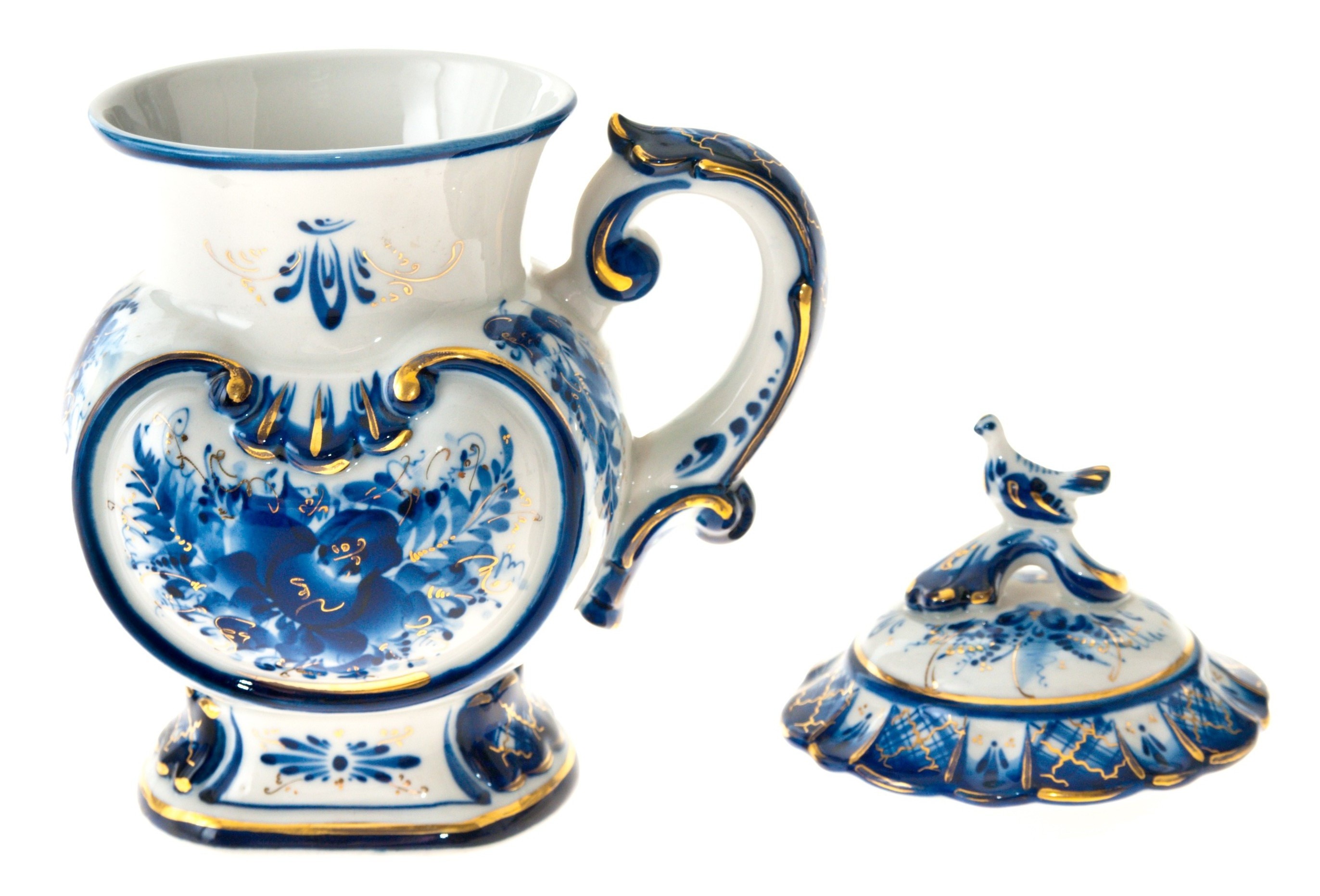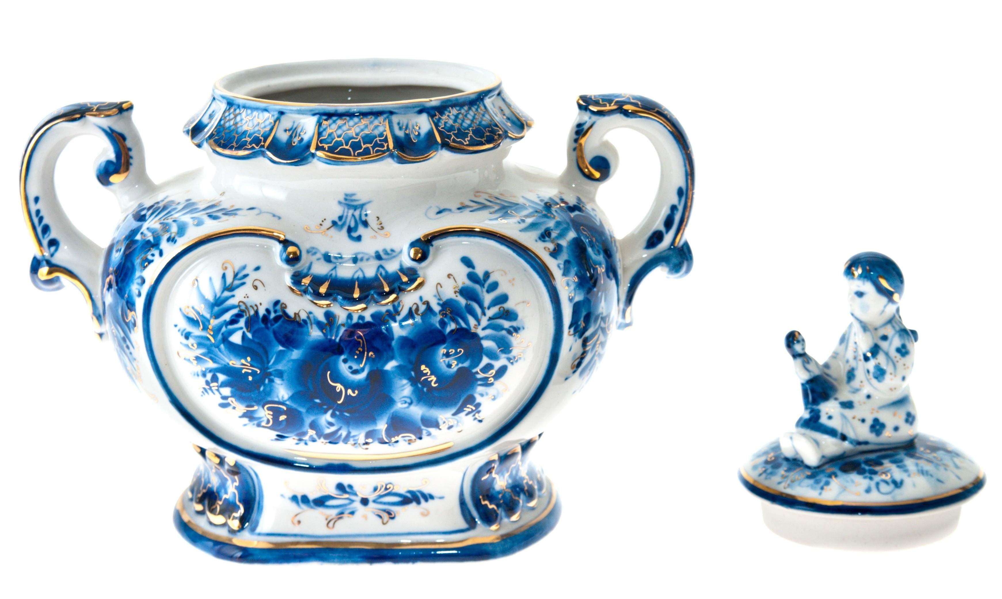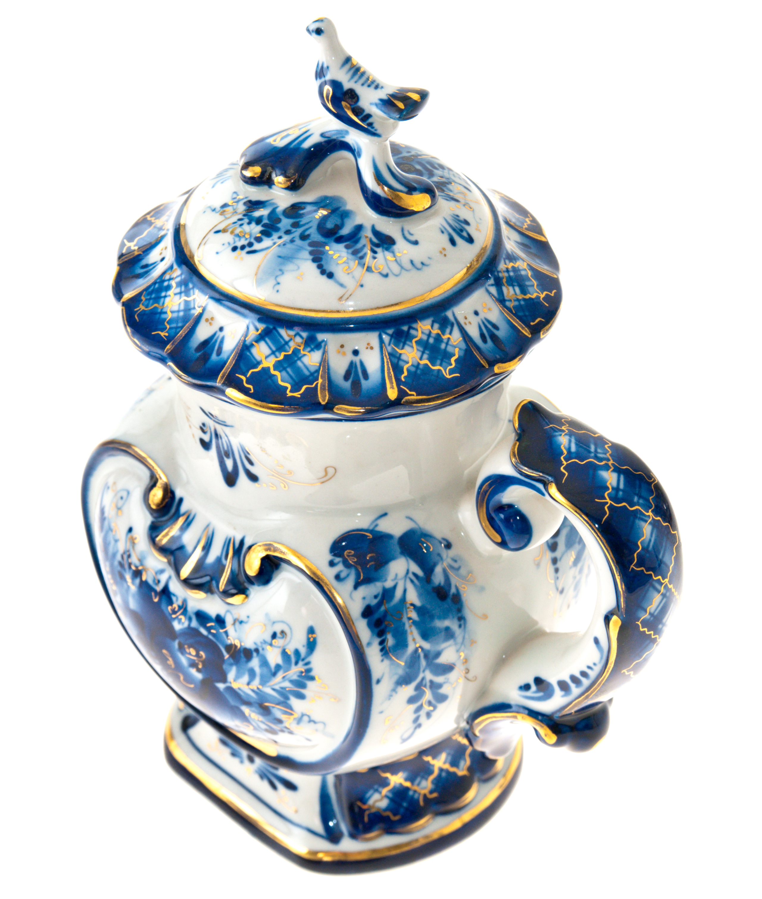 Материалы:фарфор, подглазурная ручная роспись кобальтом, золото.