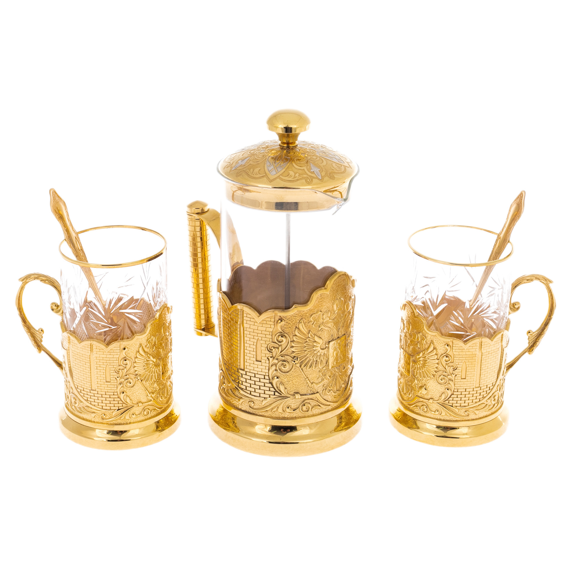 Френч-пресс с набором для чая "Герб РФ" Златоуст на 2 персоны