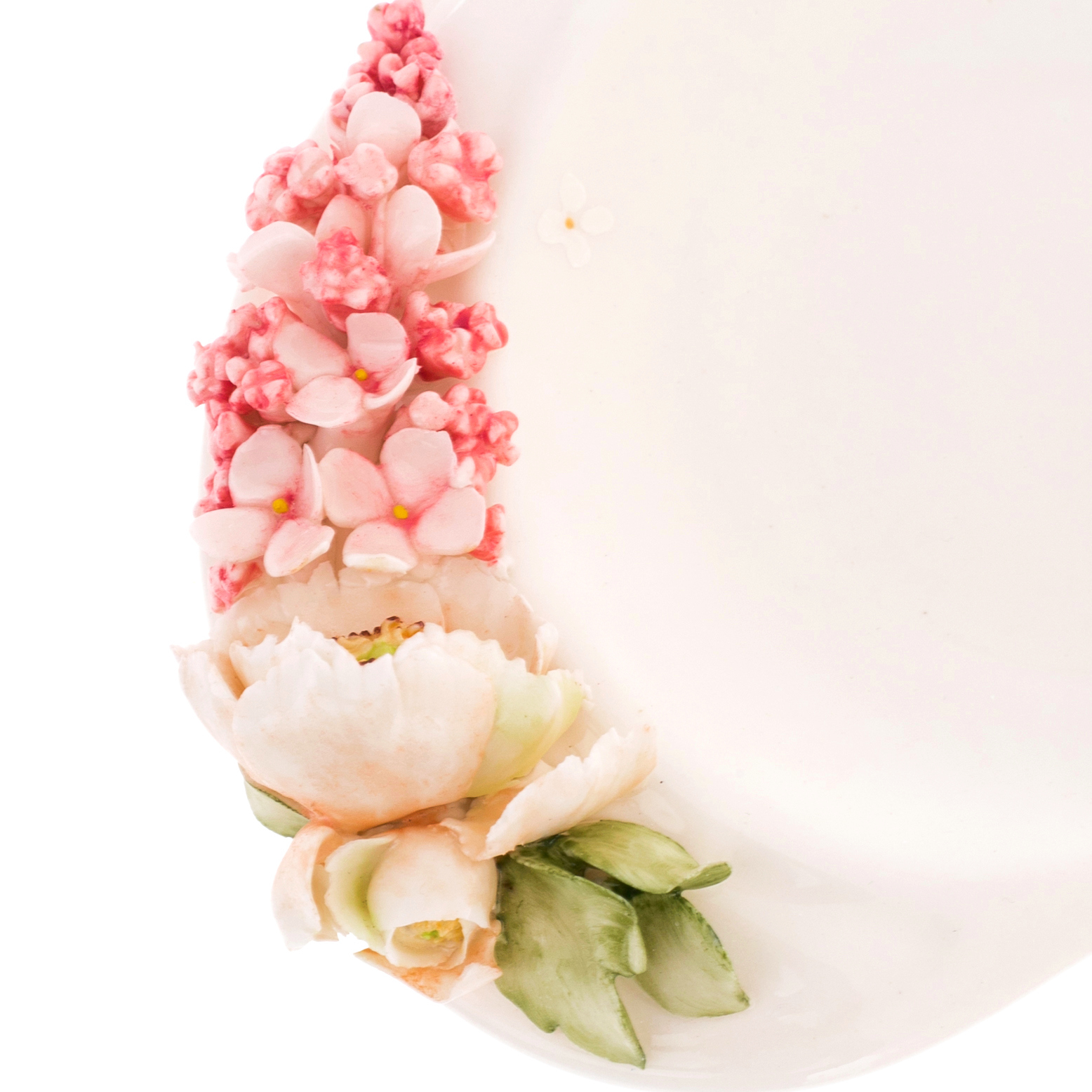 Чайный набор из фарфора "Пион и сирень розовая" на 2 персоны — это воплощение утончённой гармонии, где каждая деталь говорит на языке элегантности. Изящные чашки и блюдца с плавными изгибами словно поднимают искусство чаепития на новый уровень, превращая его в ритуал наслаждения. Лепные элементы в виде цветов пионов и сирени, выполненные вручную, оживают в розовых и нежных пастельных тонах, создавая нежный аккорд изысканности и роскоши.