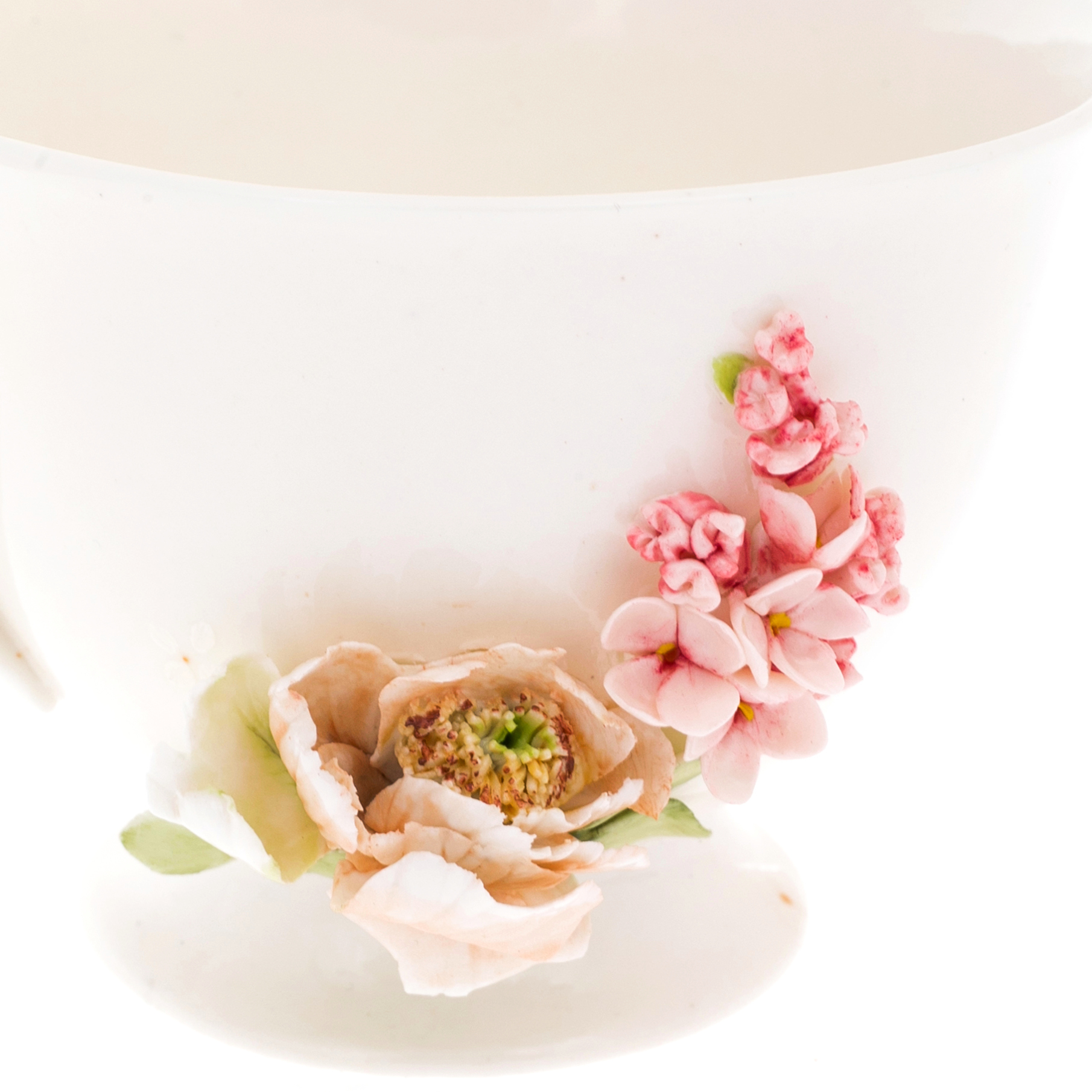 Этот набор вдохновлён самой природой: каждый лепесток, каждая линия воплощает стремление мастера к совершенству. Тёплые оттенки цветочного декора перекликаются с естественным светом фарфора, создавая эффект утренней росы, впитавшей первые лучи солнца. Кажется, будто этот набор дарит не только возможность насладиться чаем, но и тонкую связь с миром природной красоты.