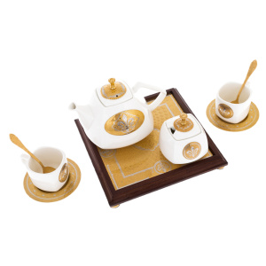 Такой набор предназначается для ценителей аристократического стиля и тех, кто стремится превратить чаепитие в изысканный ритуал. Он уместен в кабинете руководителя, в гостиной загородного дома или в качестве статусного подарка человеку, для которого важны красота предметов, тактильная роскошь и продуманная эстетика. «Тудор» не просто подчёркивает утончённый вкус своего владельца — он становится знаковым элементом интерьера, создающим атмосферу спокойствия, достоинства и традиции.