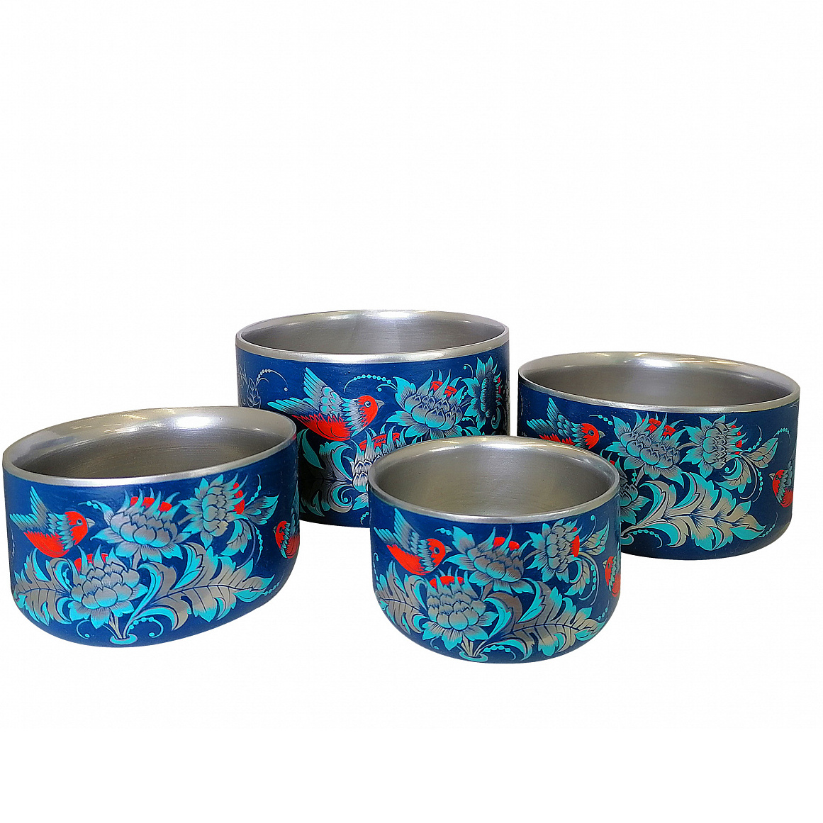 Размеры: чашка 100х165х165 мм. - 1 шт., чашка 80х140х140 мм. -1 шт., чашка 70х120х120 мм. - 1шт., чашка 60х100х100 мм. - 1 шт.