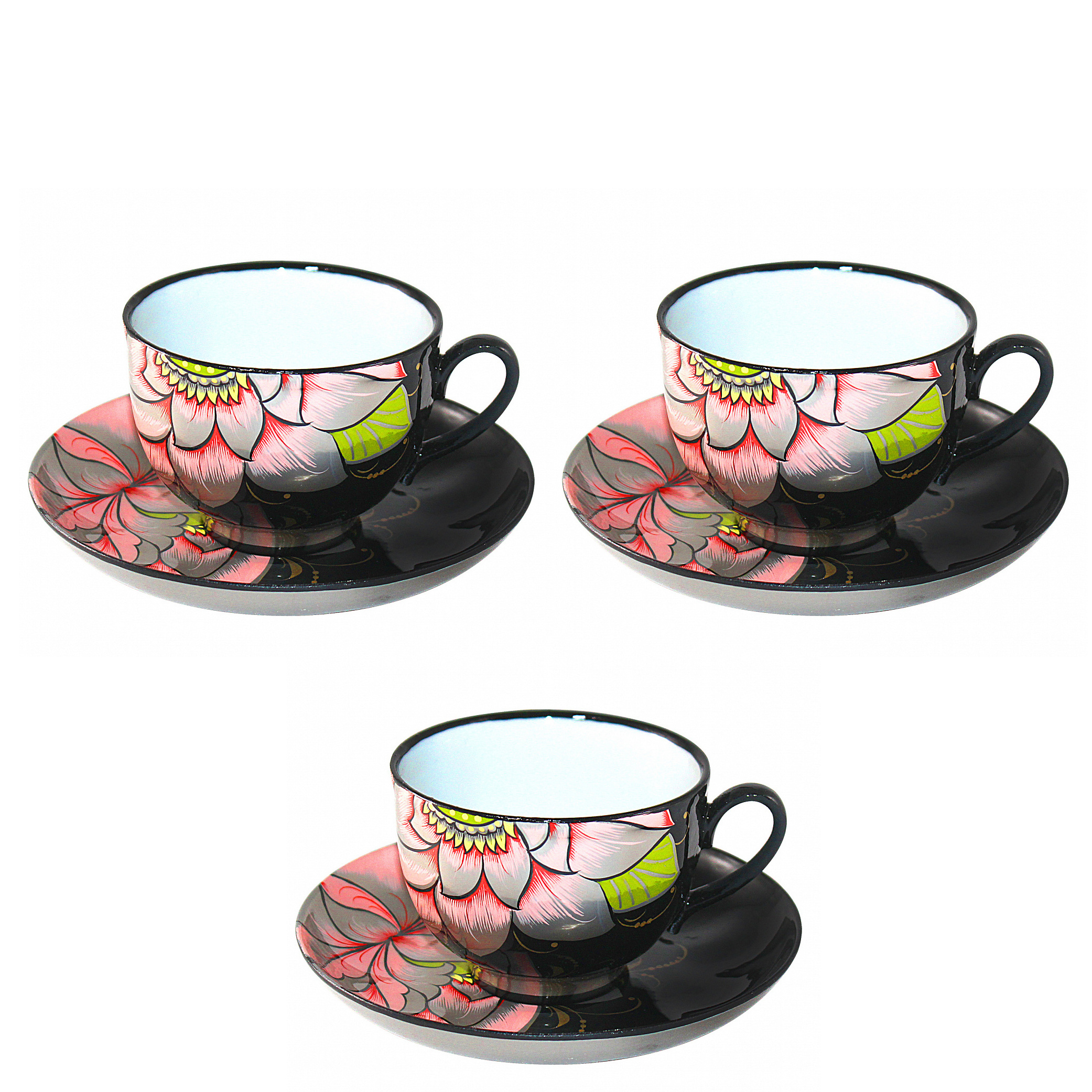 Набор для чая "Лотос" на 3 персоны, хохлома